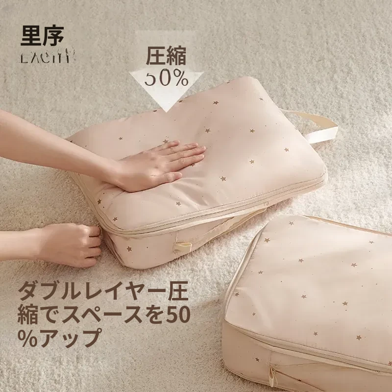 奶杏色-下着バッグ+衣類バッグL【衣類拡張セット】