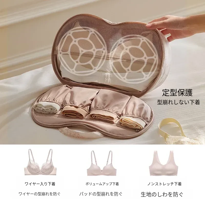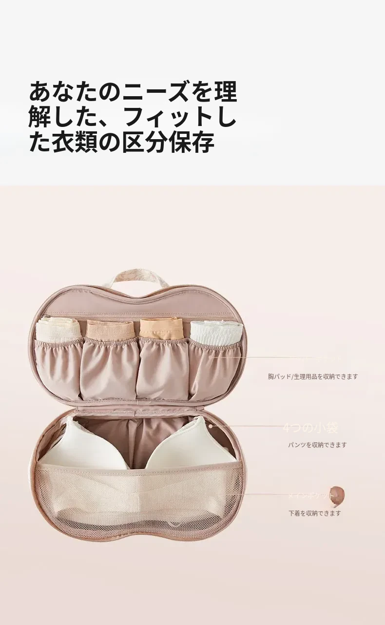 リズオ内衣収納ポーチ - 旅行用下着整理袋、ブラジャーや肌着の収納に最適!持ち運び便利で変形防止、あなたの大切な衣類をしっかり守ります!