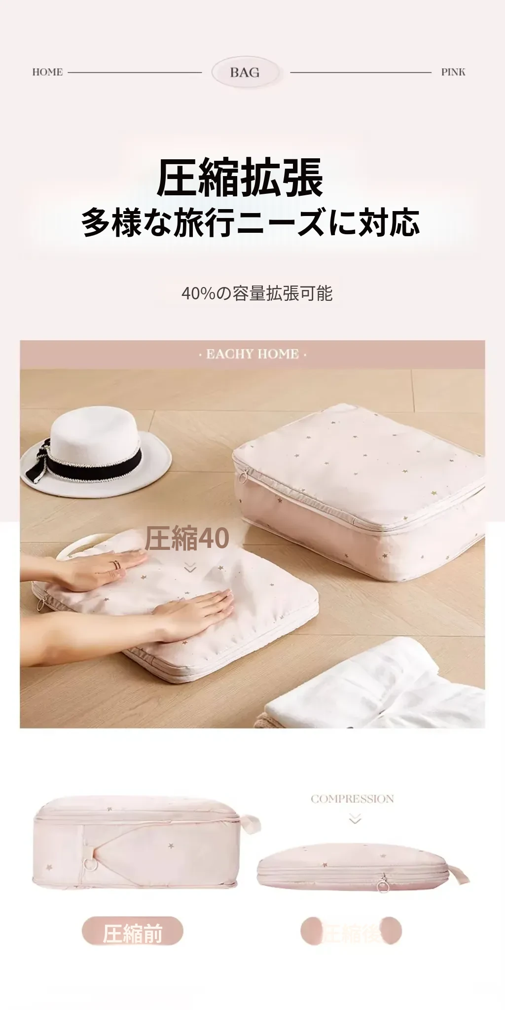 木桃粉-下着バッグ+衣類バッグL【衣類拡張セット】