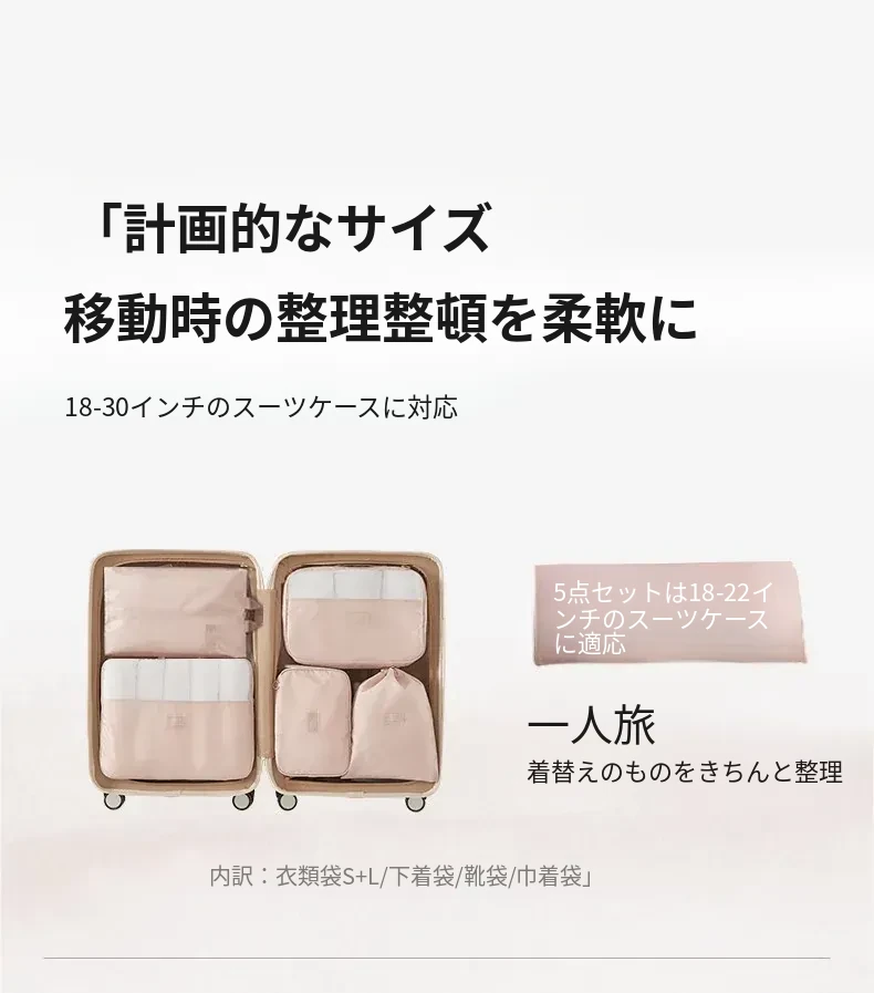 旅行をもっと快適に!里序の圧縮収納バッグ - スーツケース整理に最適な衣類・下着分け用ポーチ。出張や旅行をスマートに!収納力抜群で、荷物をスッキリ整理。