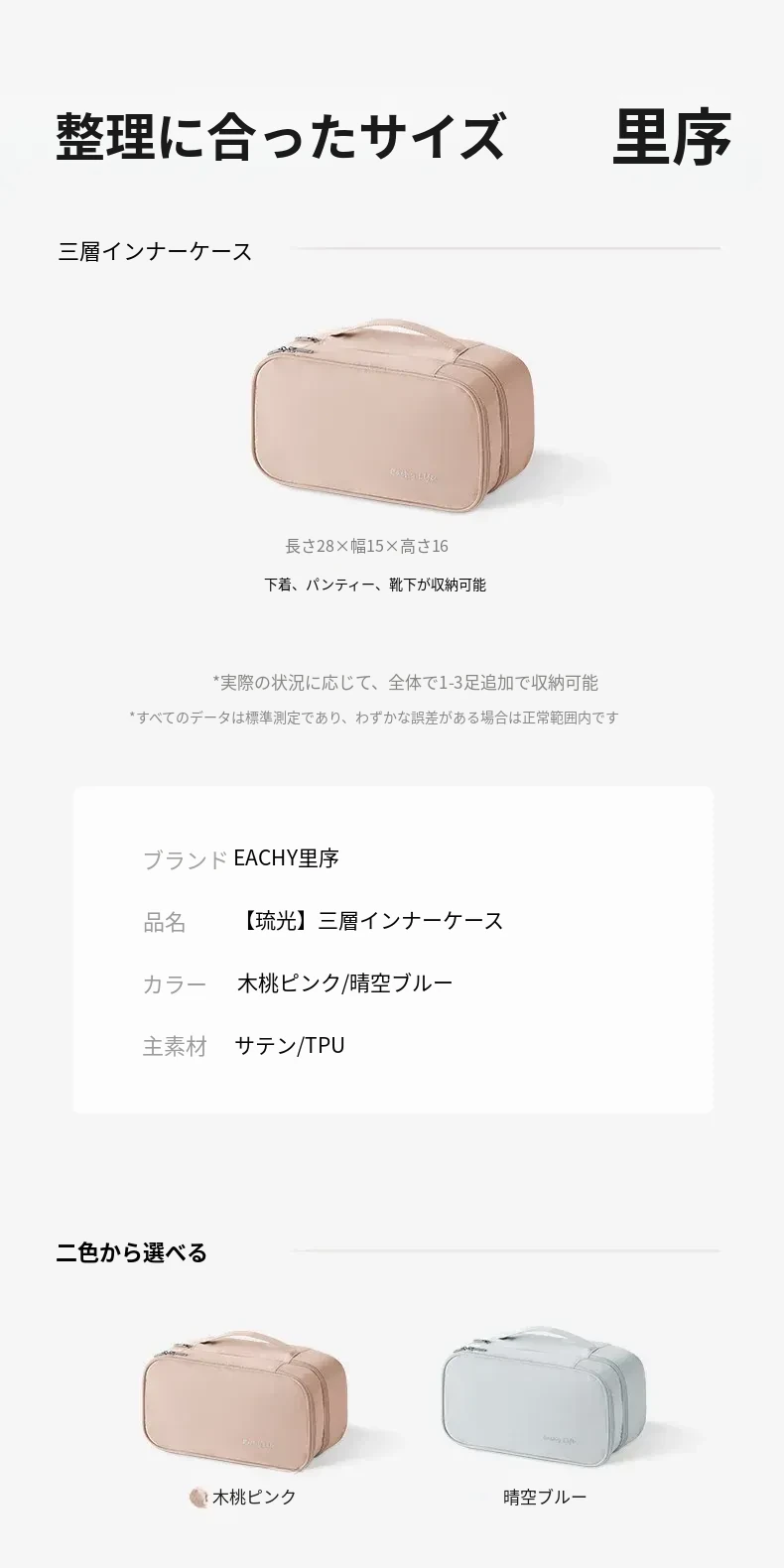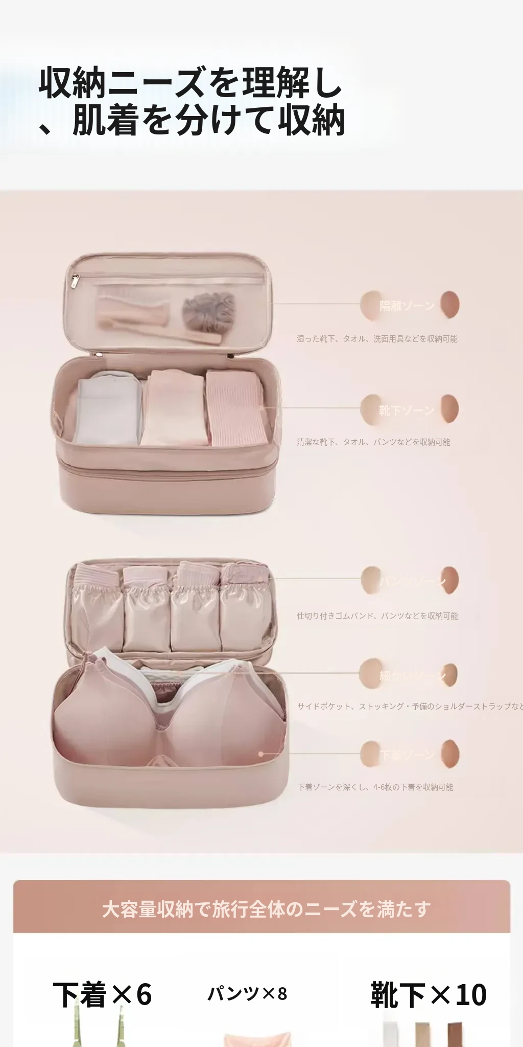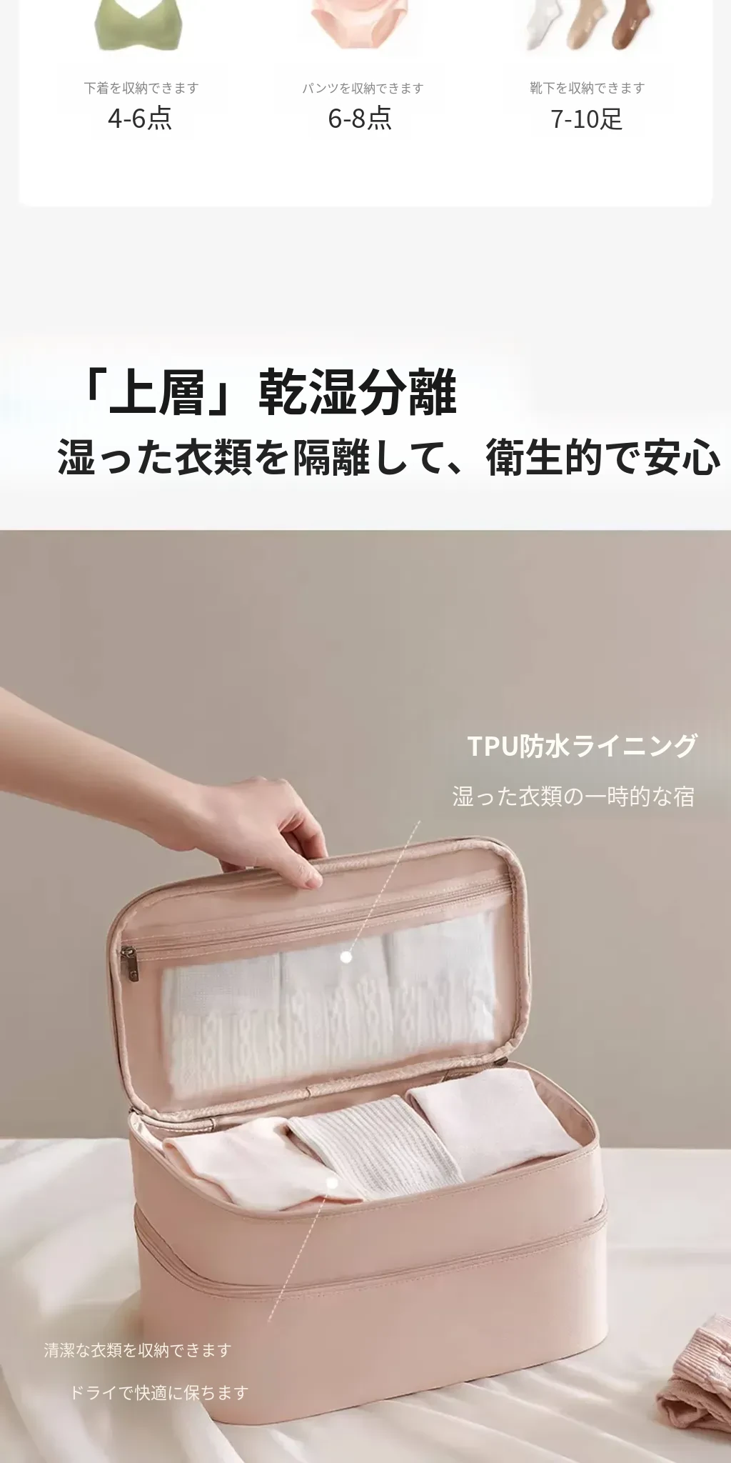 リズオ内衣収納バッグ|旅行用下着収納袋|肌着や靴下を整理整頓|持ち運び便利!出張や旅行に最適な必需品!