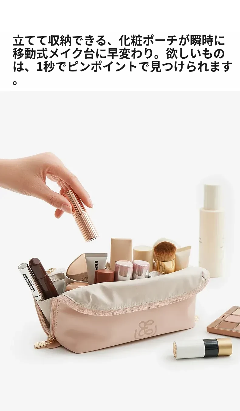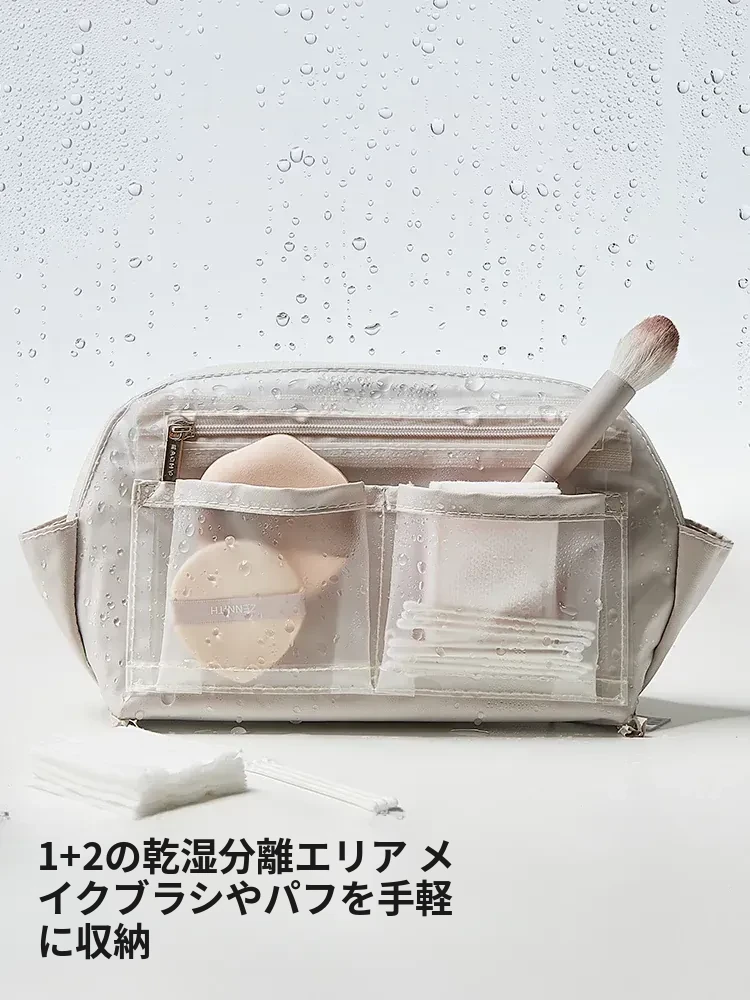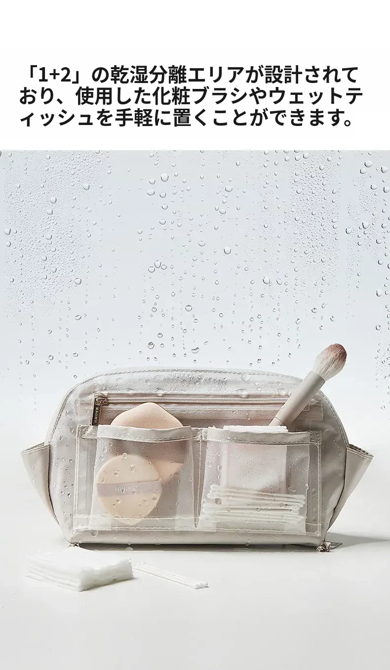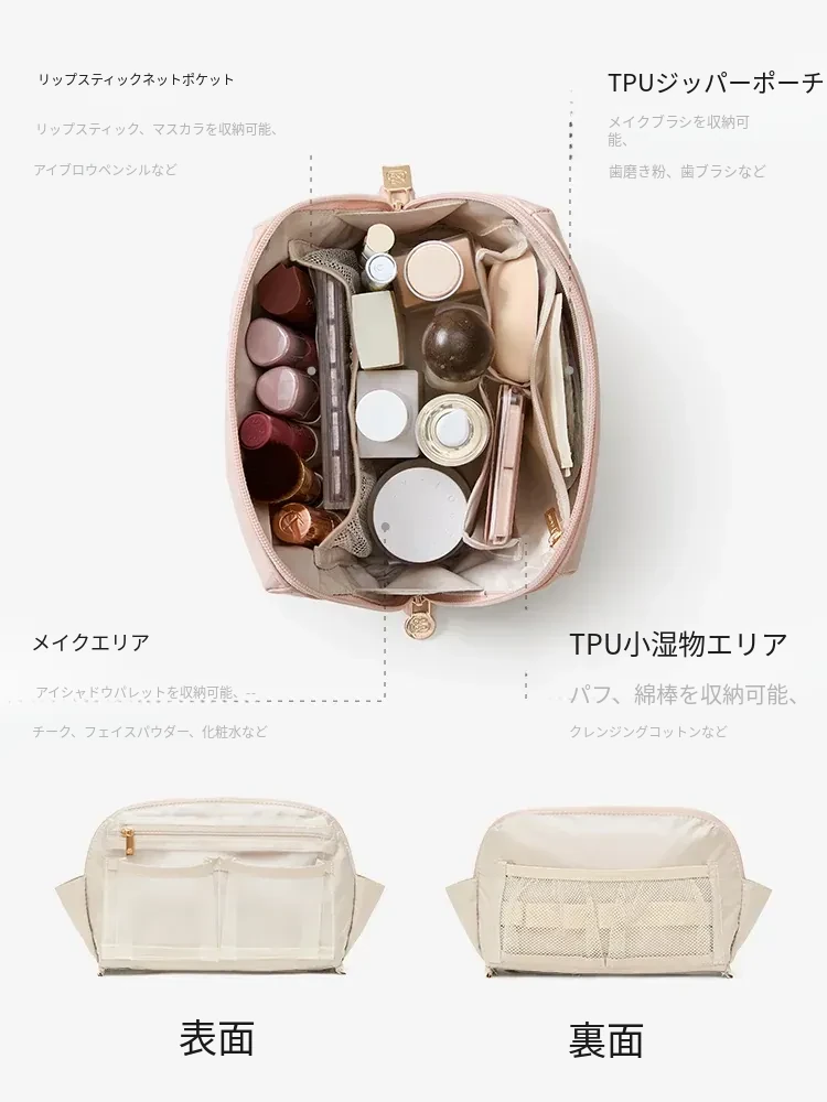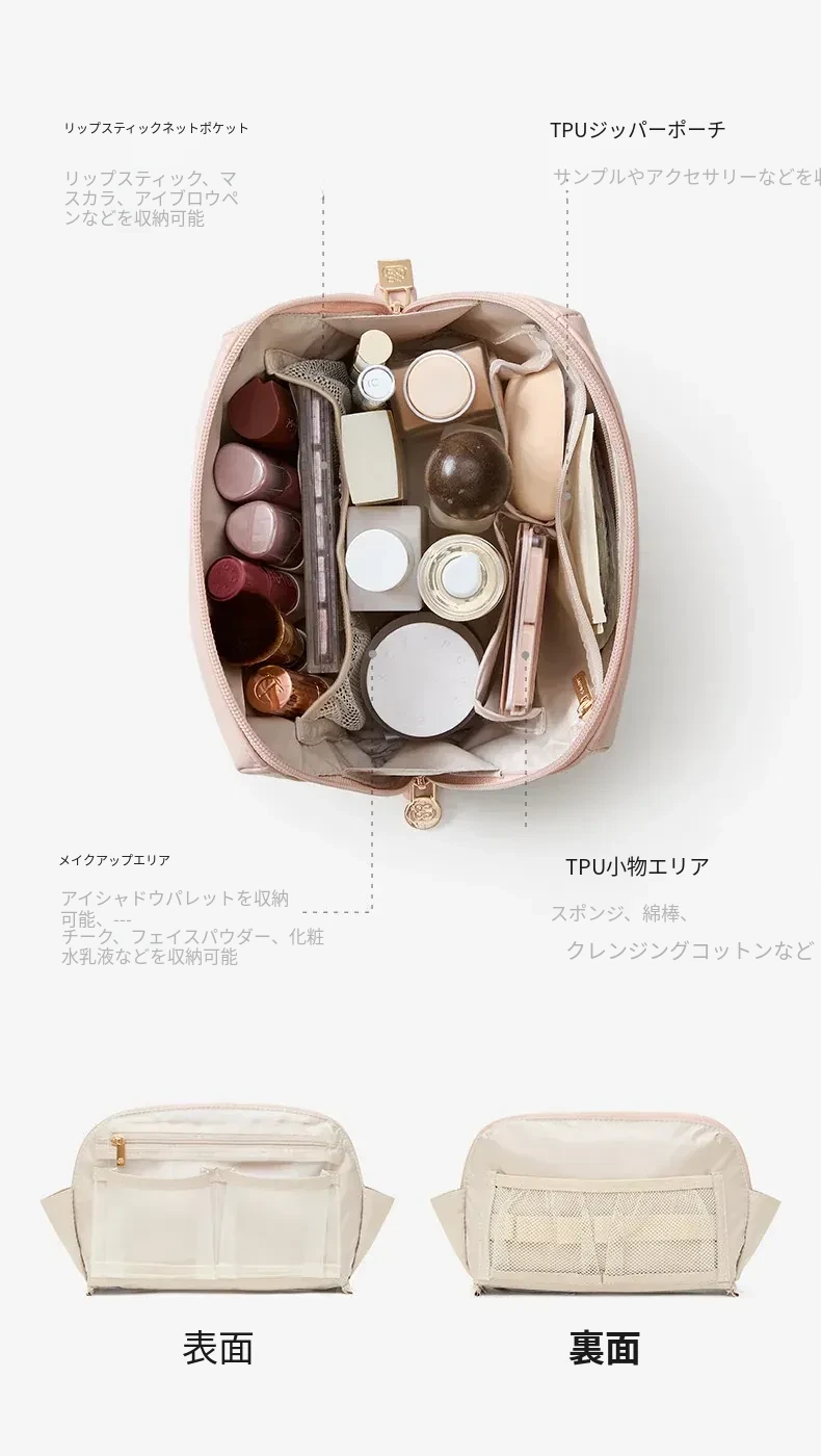 高級感溢れるポータブルメイクアップバッグ - 旅行に最適な防水デザイン、化粧品や洗面用具をスマートに収納できる便利な仕切り付き!