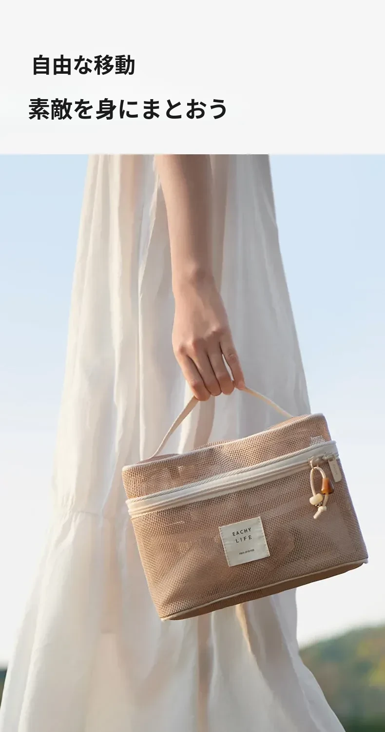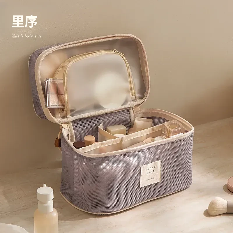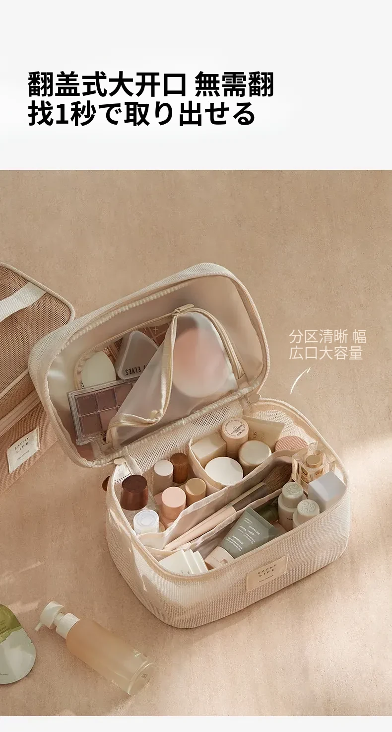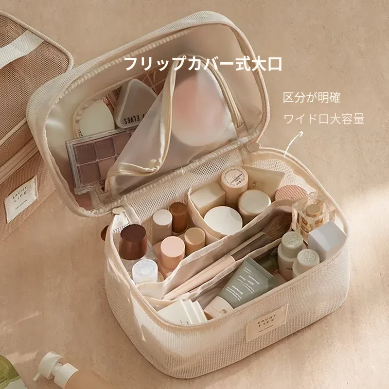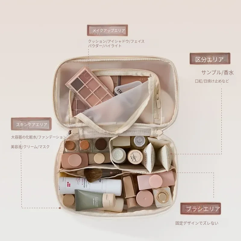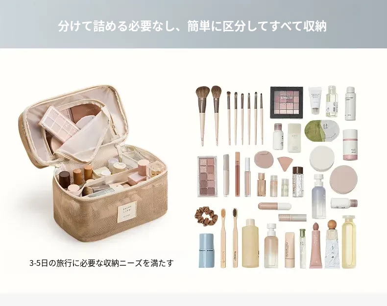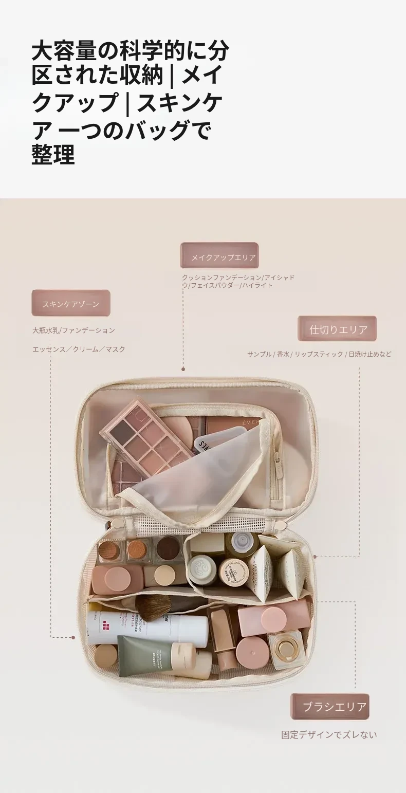 2026年新作!高級旅行用化粧ポーチ - 手提式の便利なメイク直しポーチ!収納力抜群の仕切り付きで、すっきり整理整頓。女性にぴったりのスタイリッシュなデザインで、旅行や日常使いにも最適!