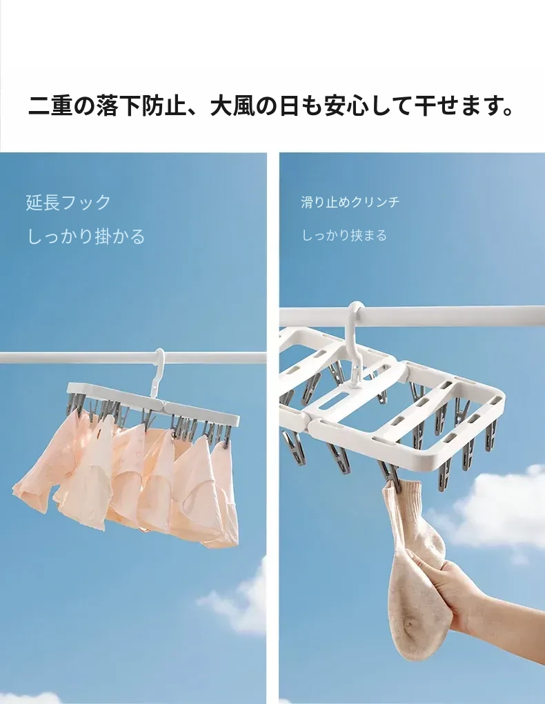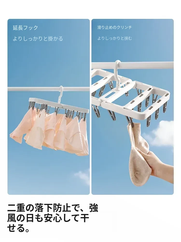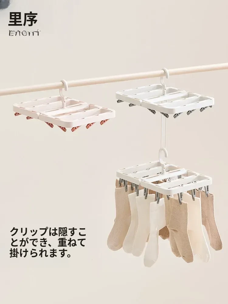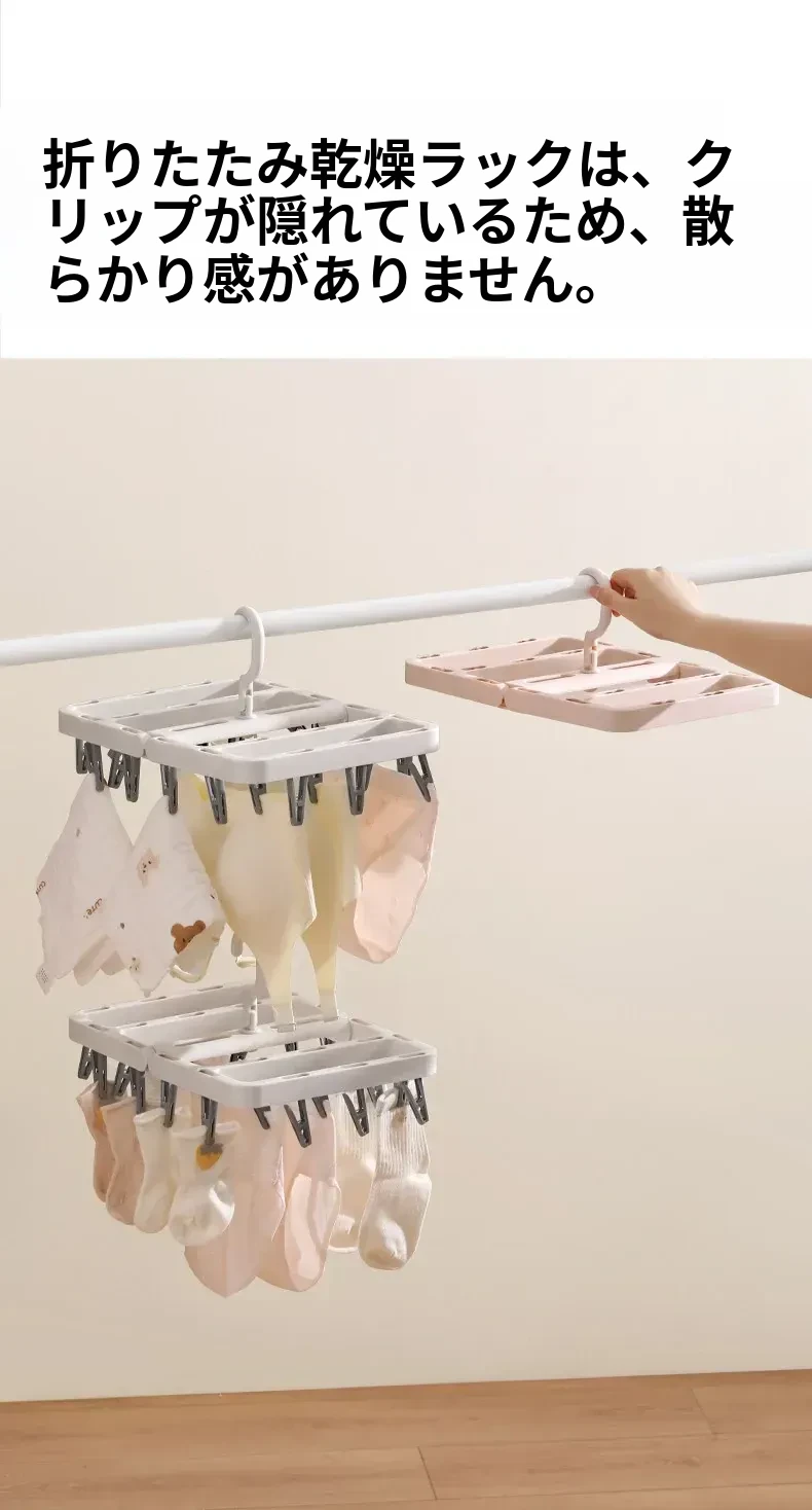 多機能折りたたみ式靴下干しハンガー - 赤ちゃん専用の多クリップ付きで、靴下や下着を簡単に干せる便利アイテム!スッキリ収納できて、洗濯が楽になります。