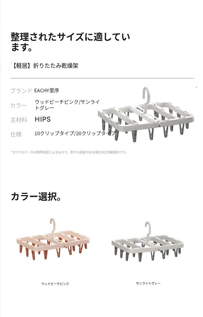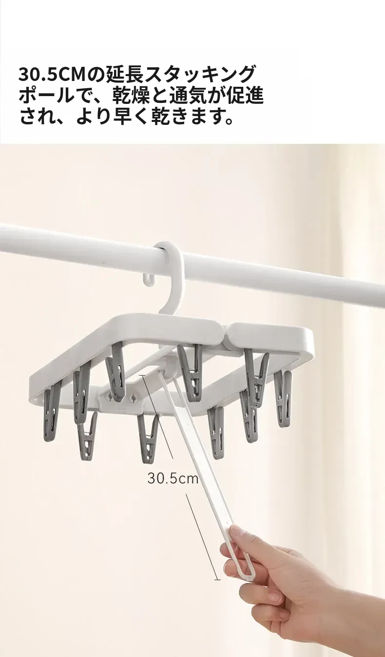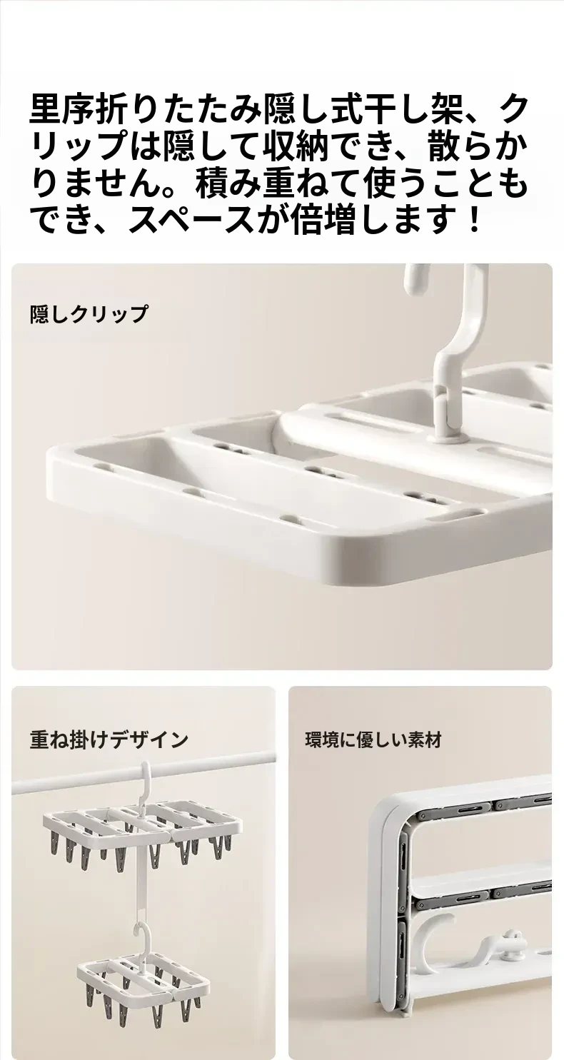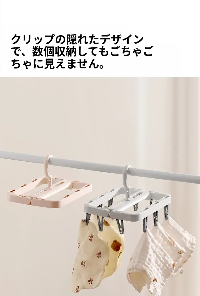 多機能折りたたみ式靴下干しハンガー - 赤ちゃん専用の多クリップ付きで、靴下や下着を簡単に干せる便利アイテム!スッキリ収納できて、洗濯が楽になります。
