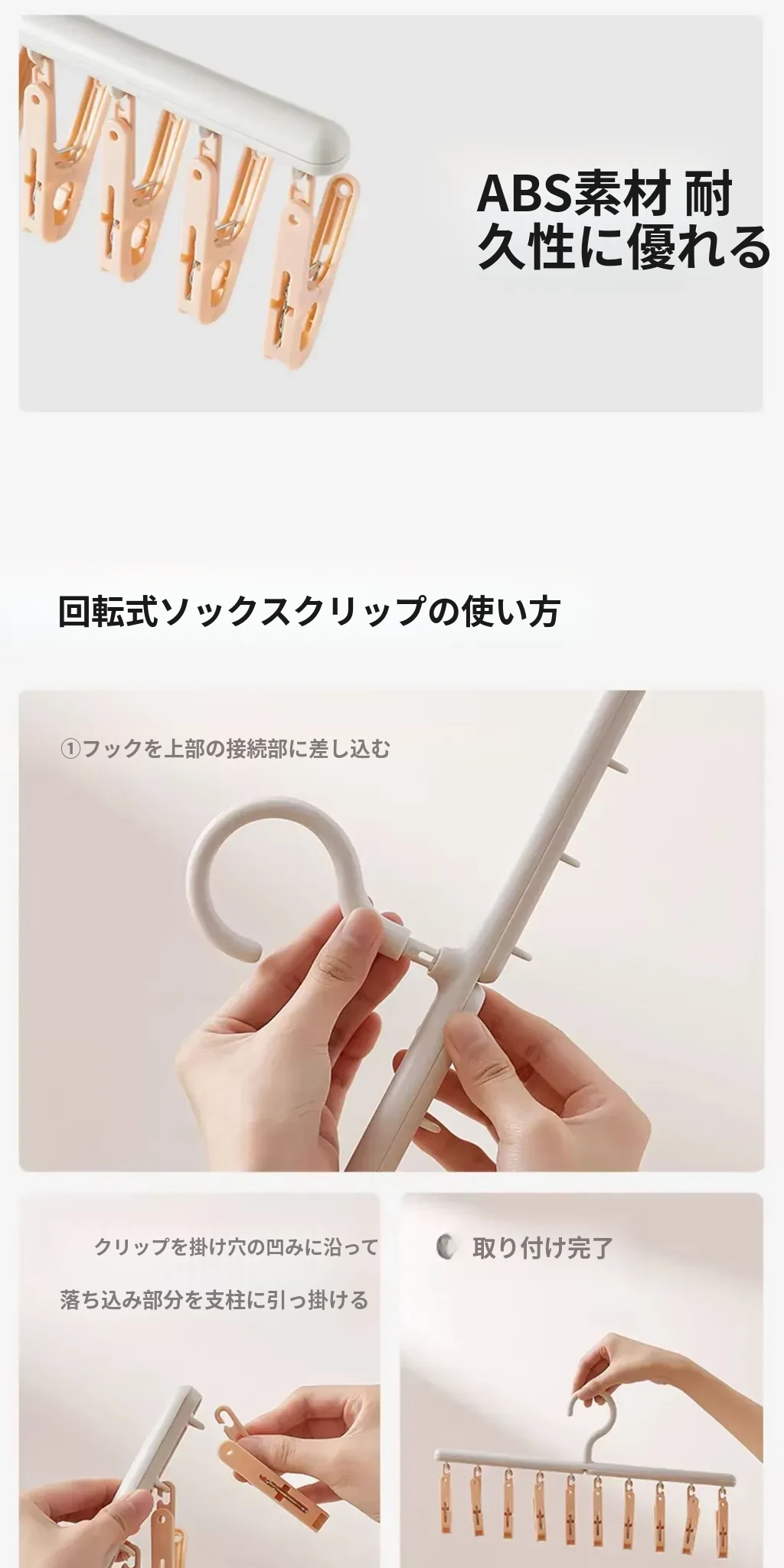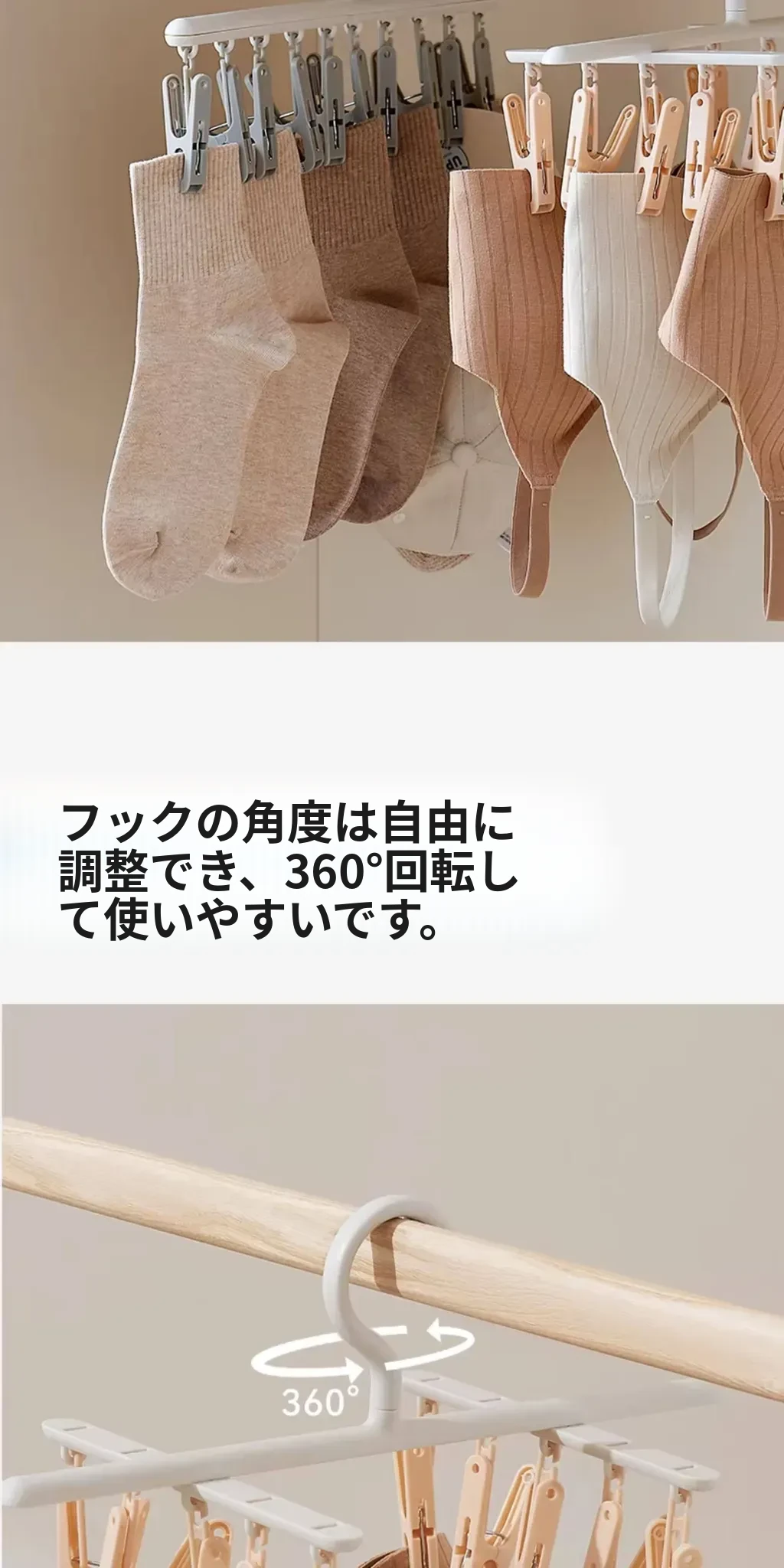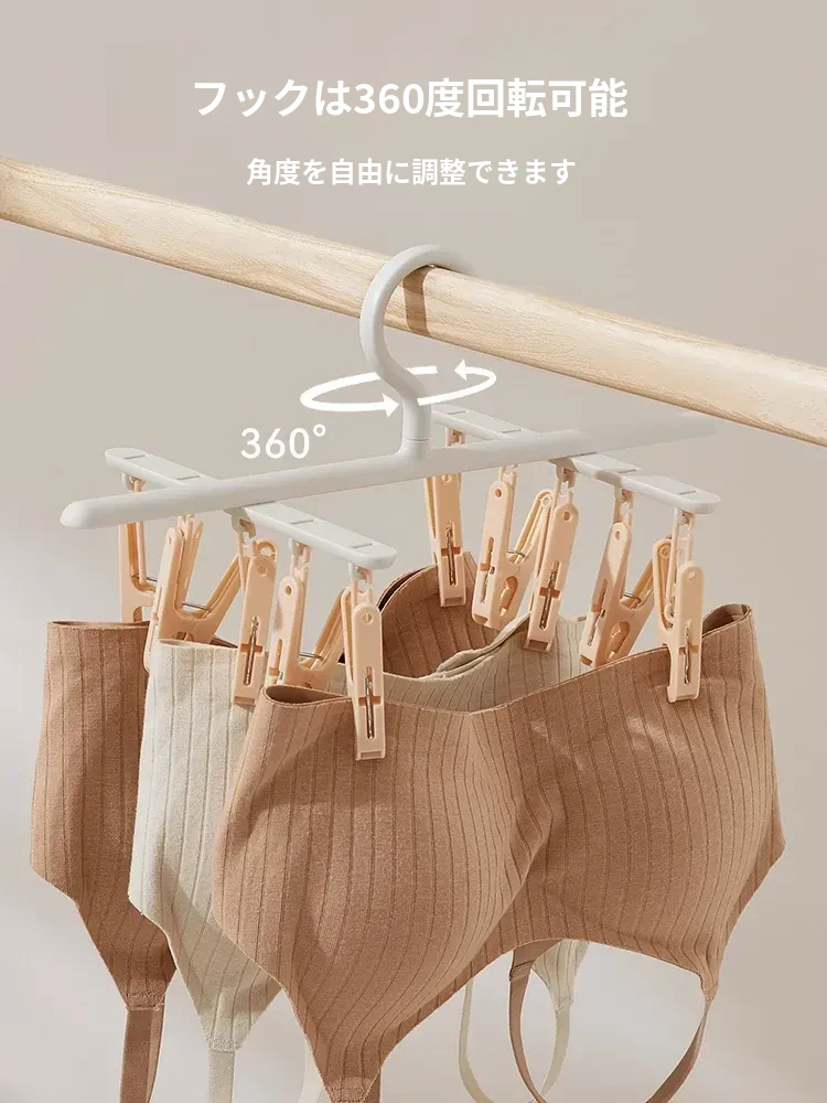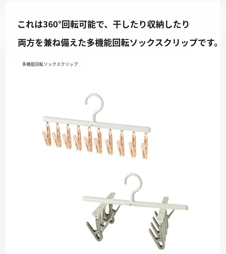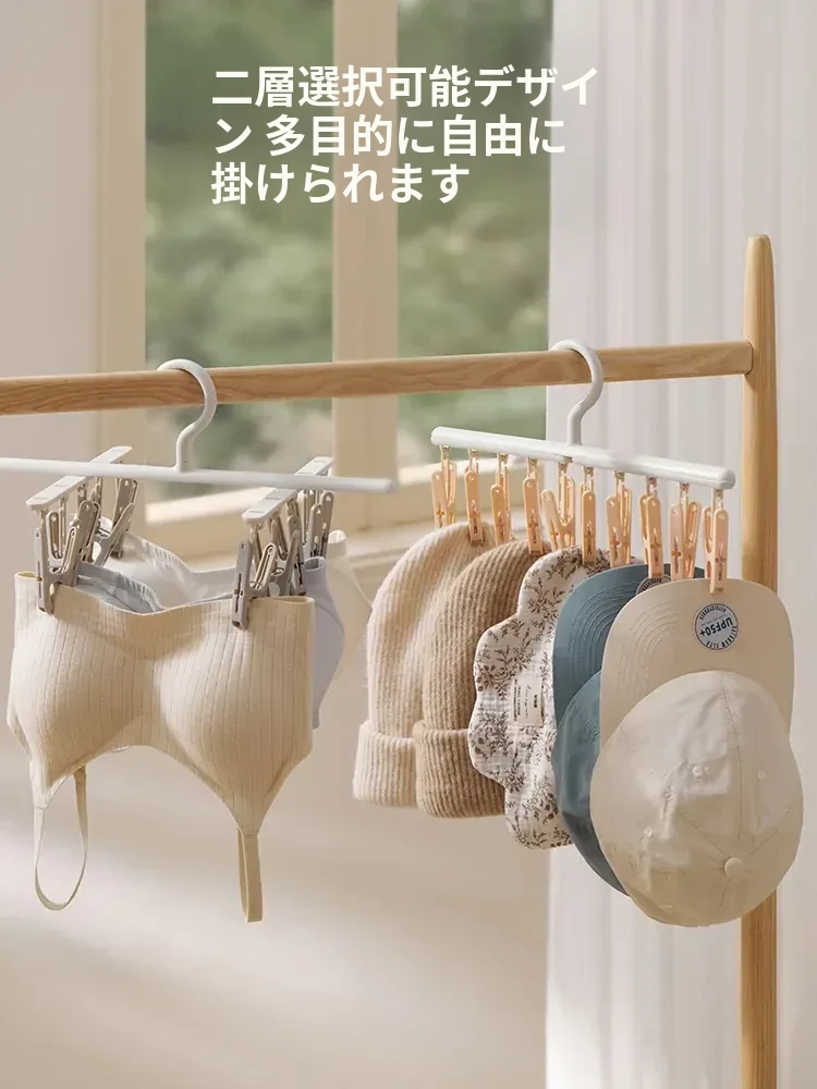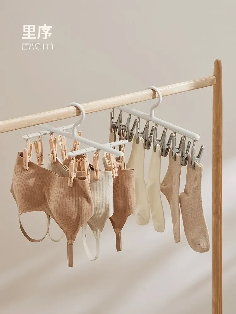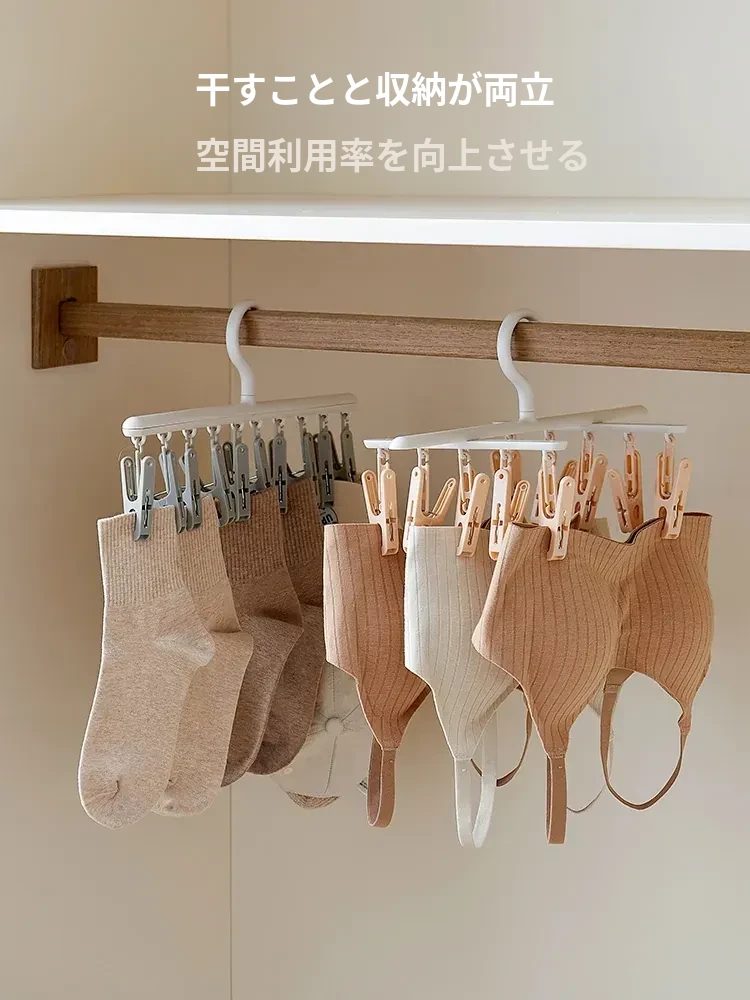 リズリオ干しラック 家庭用靴下干し神器!多機能クリップ付きで、学生の下着や靴下も楽々干せる!スペース節約の便利アイテムで、家事をもっと楽に!