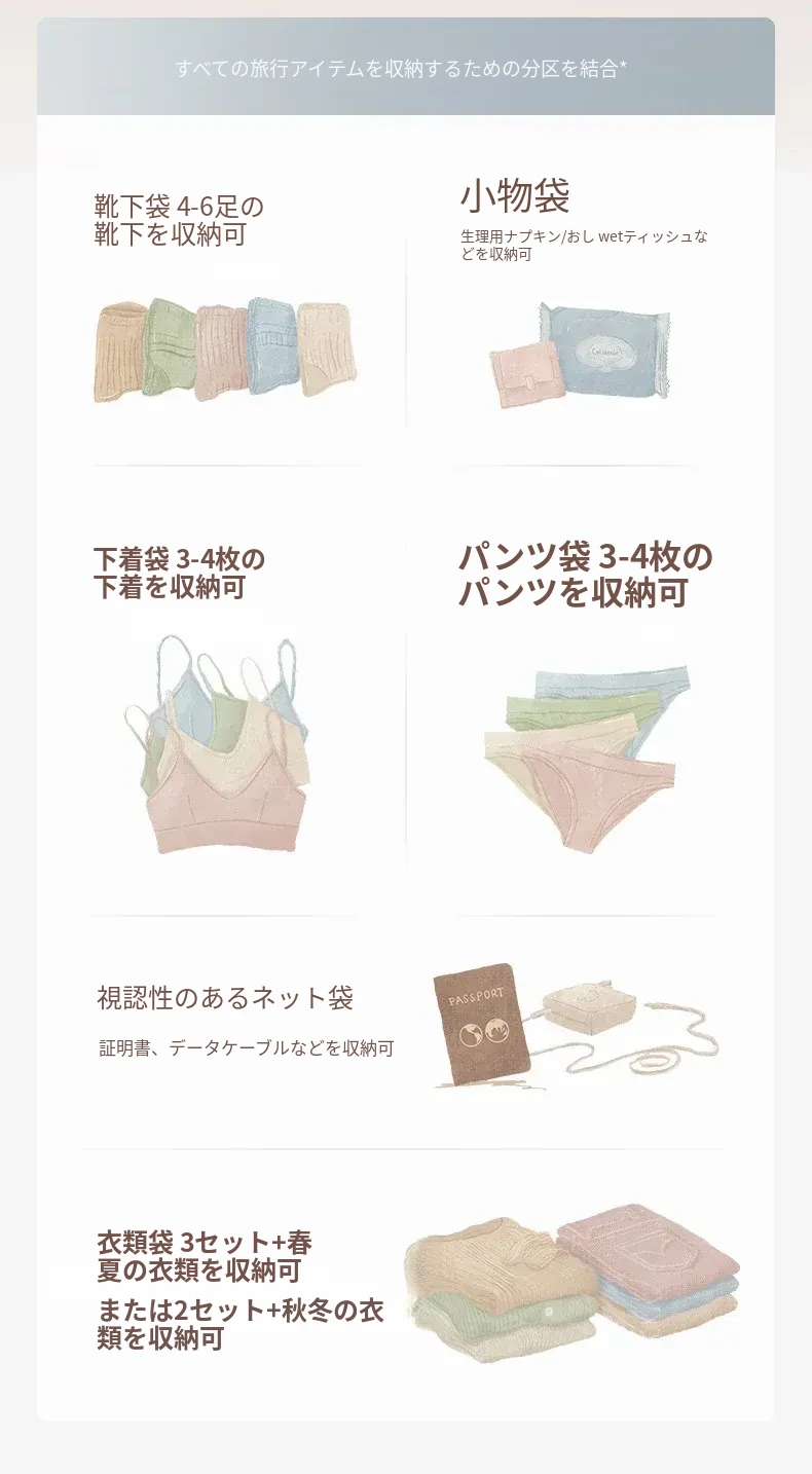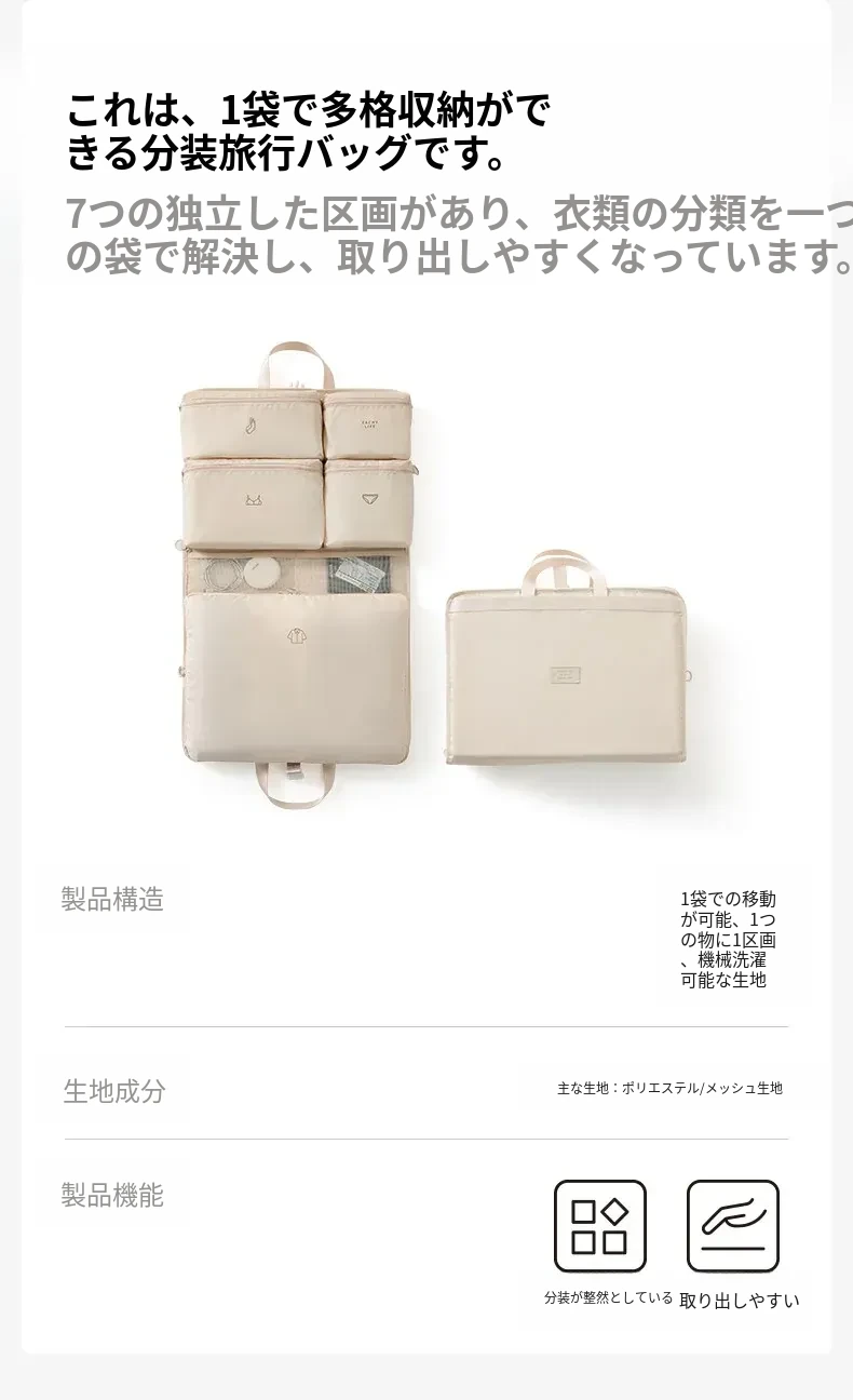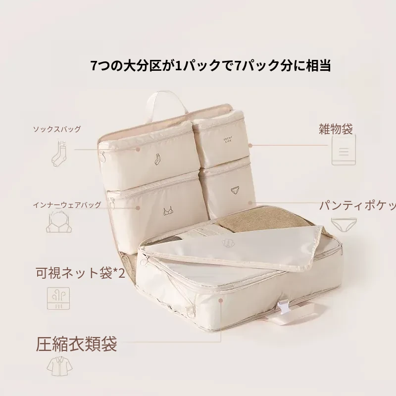 高級感溢れるリュック旅行収納袋!衣類や下着をスマートに仕分けて、出張や旅行を快適に。持ち運びも便利なオールインワン整理パックで、あなたの旅をもっと楽しく!