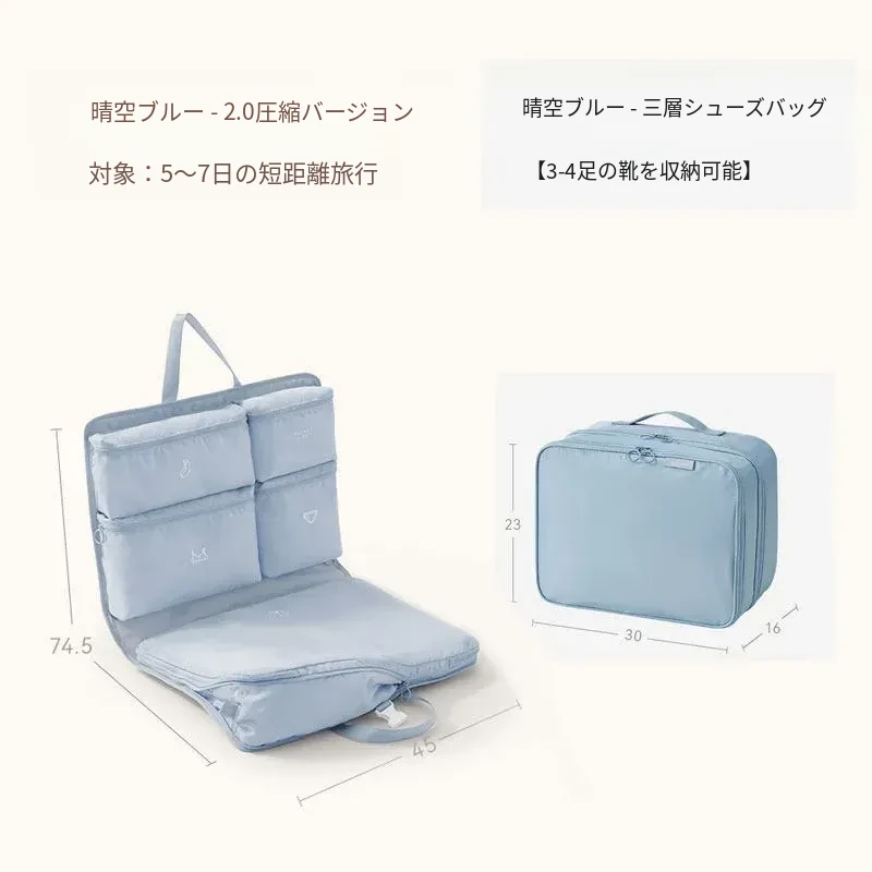 晴空ブルー【2.0圧縮収納袋+三層シューズバッグ】