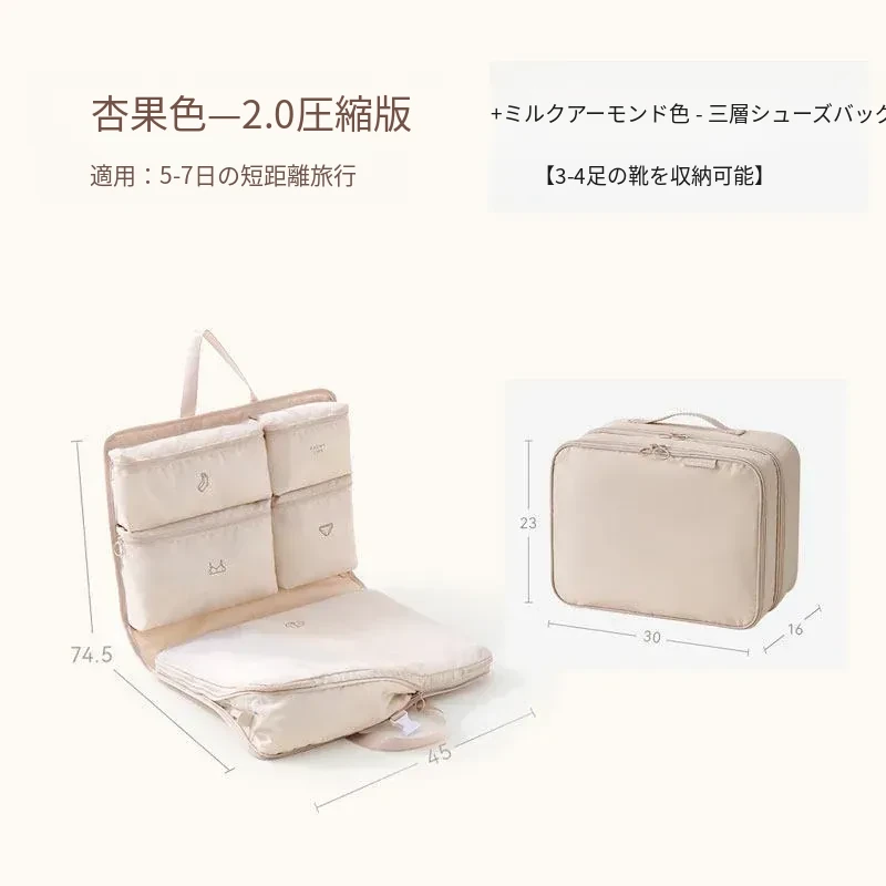 杏果色【2.0圧縮収納袋+三層シューズバッグ】
