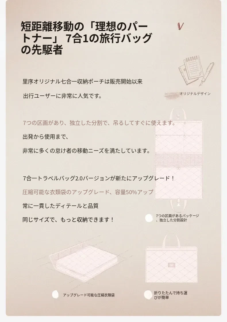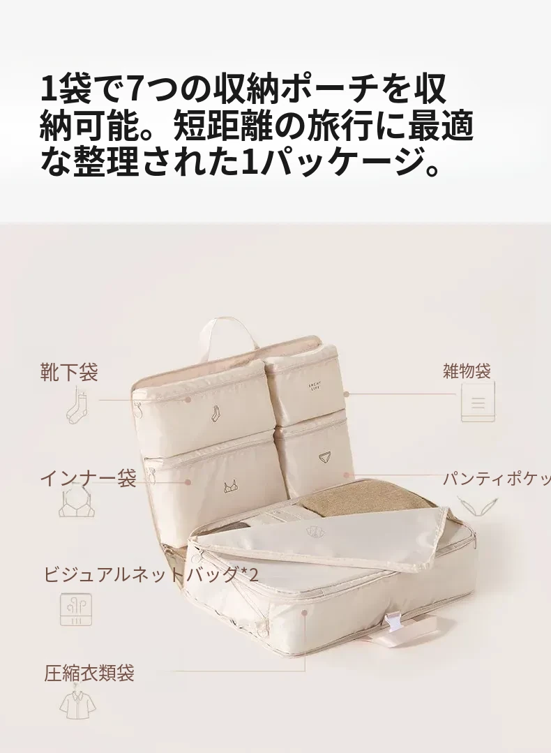 【2.0圧縮|7収納】coco粉-ハンギングキャリーケース用