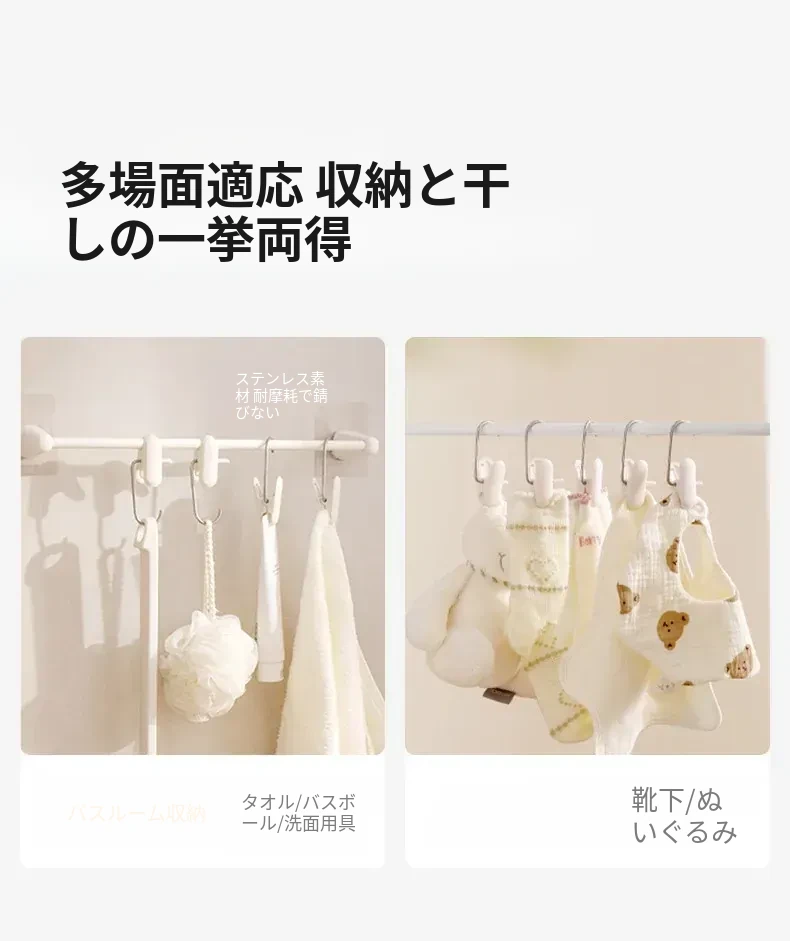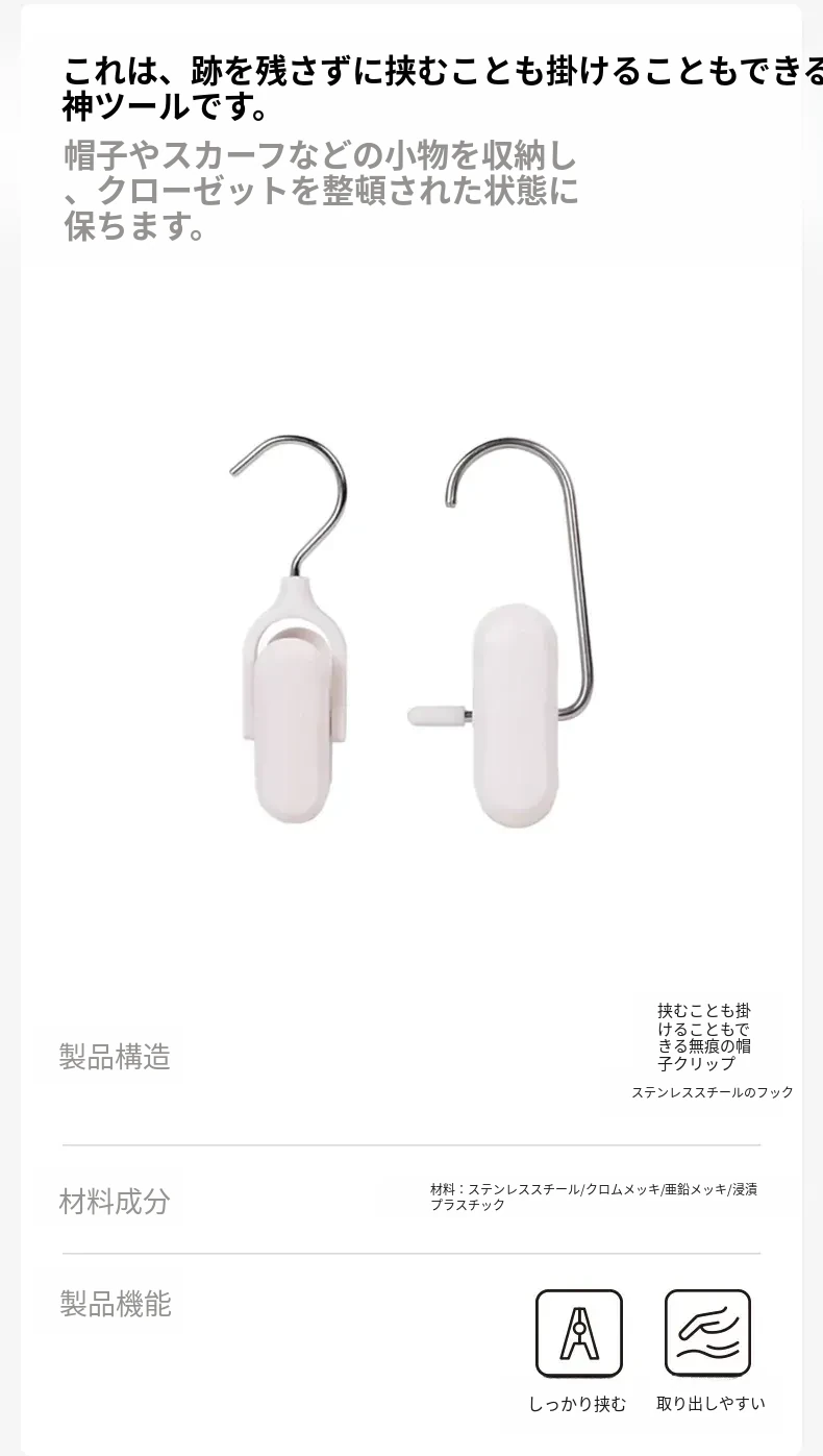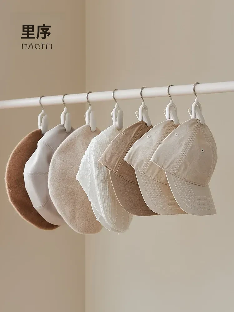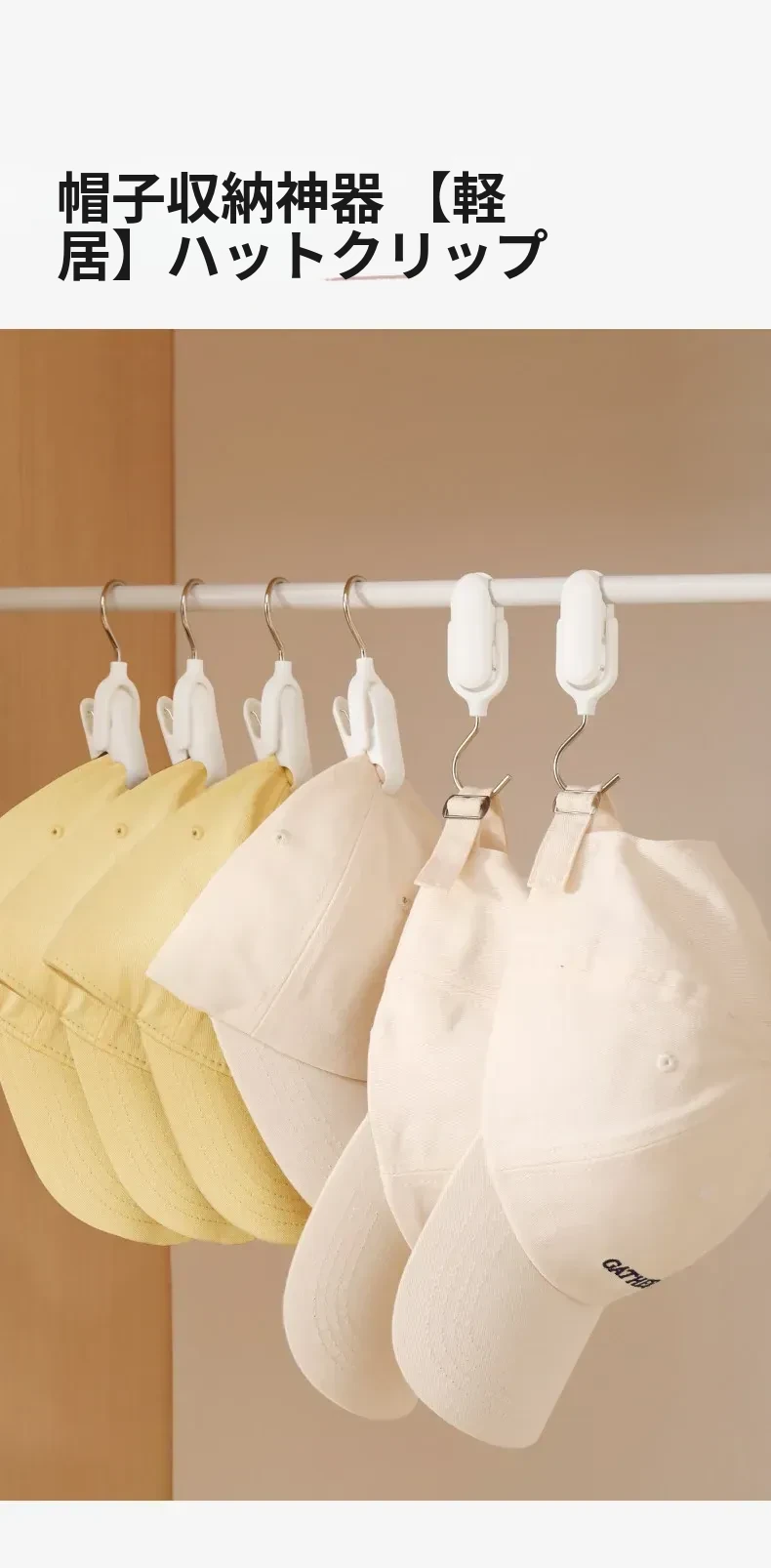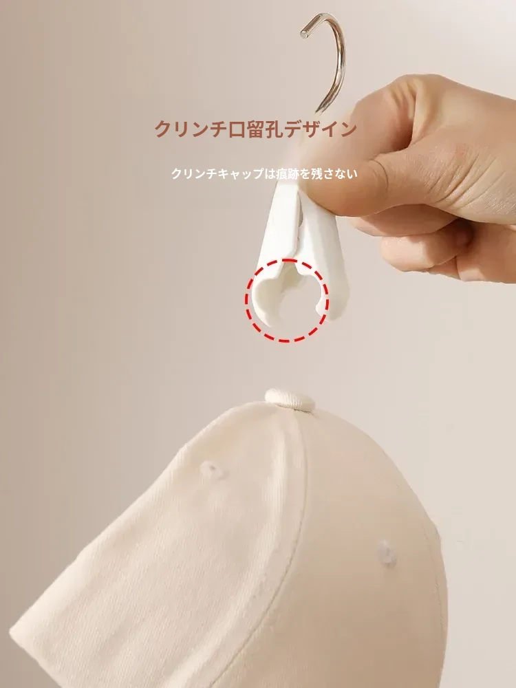 帽子収納マジックフック|家庭用・玄関・寮・クローゼットに最適!吊り下げ整理・回転式・跡が残らないクリップ付きハンガーで、スッキリおしゃれに帽子を収納!