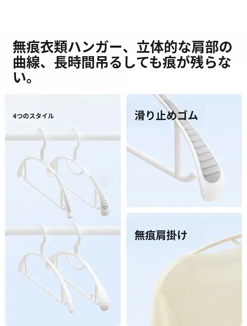 肩のラインを守る!シームレスデザインの衣類ハンガー - 大衣やニットも安心して吊るせる滑り止め付き、家庭用に最適な広肩ハンガー!