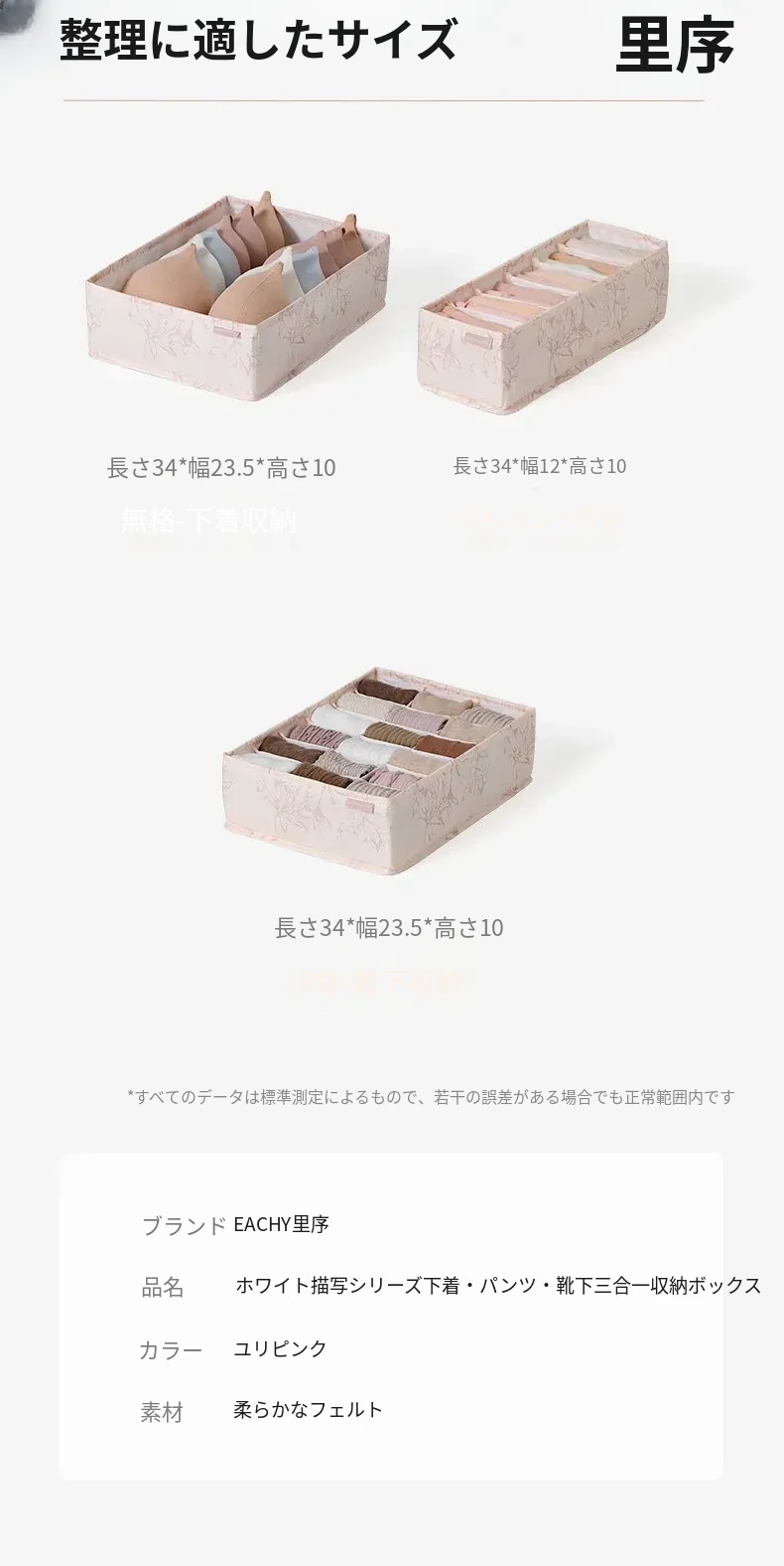 リスー収納ボックス - 靴下や下着をスッキリ整理!家庭用引き出し仕切りボックスで、すっきりとしたクローゼットを実現。あなたの収納ライフをもっと快適に!