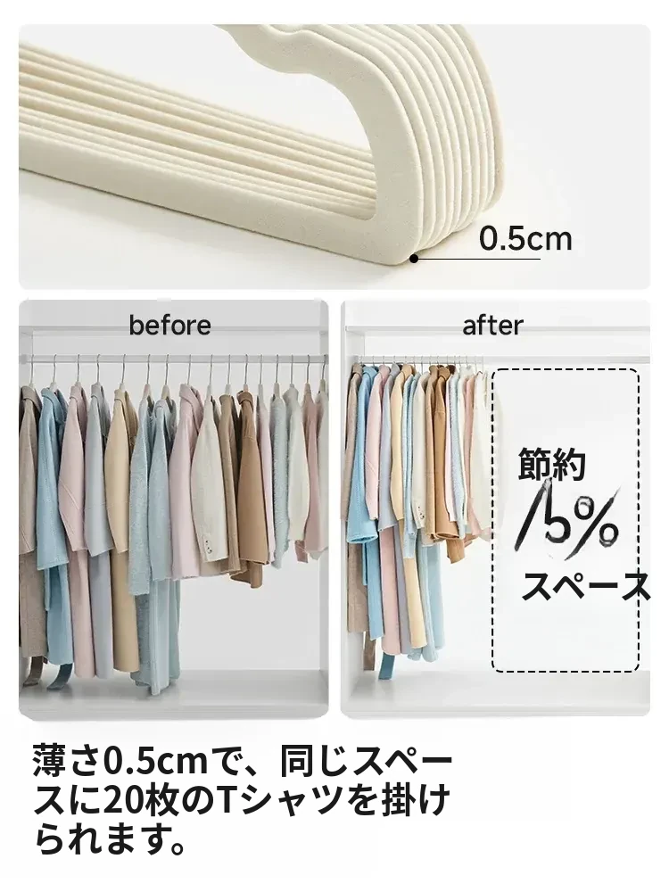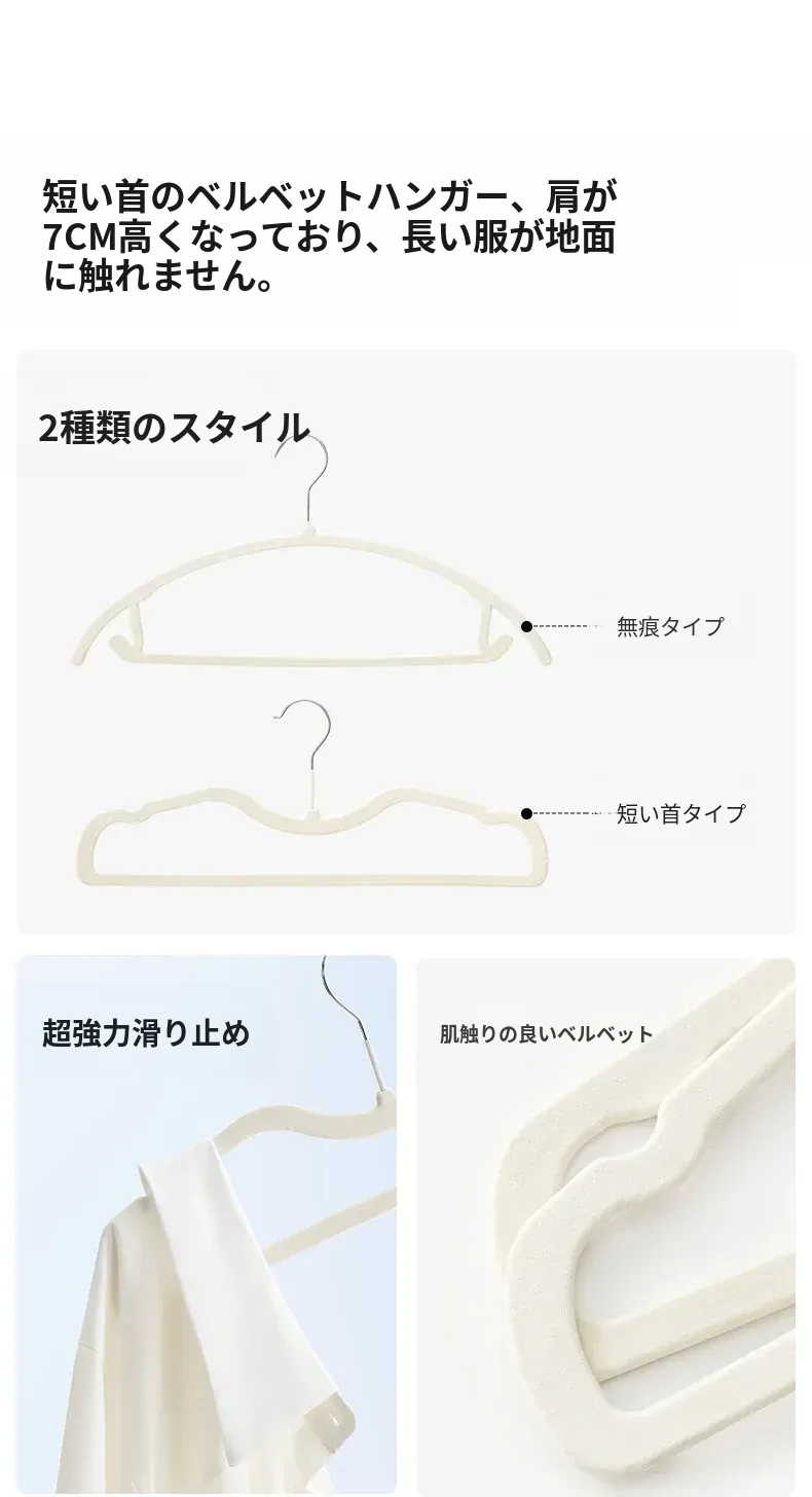 リスーベルベットハンガー 家庭用 無痕 服掛け 肩の角を守る 滑らない 洗濯物をしっかり支える 省スペース 整理上手の必須アイテム!