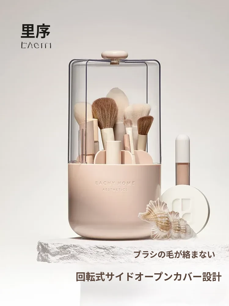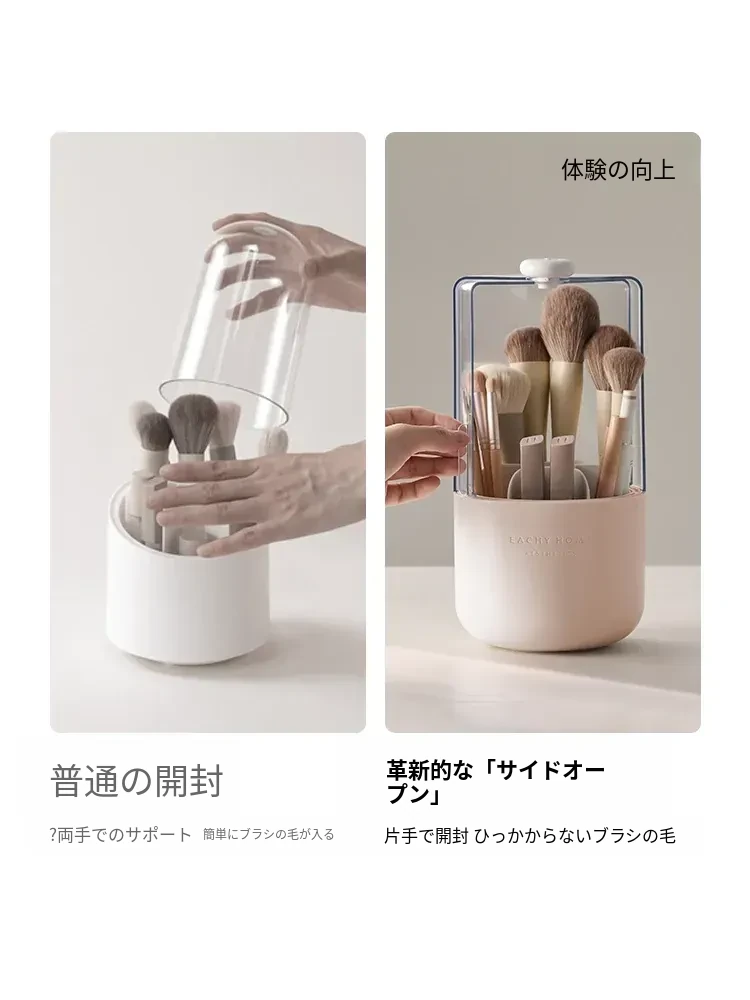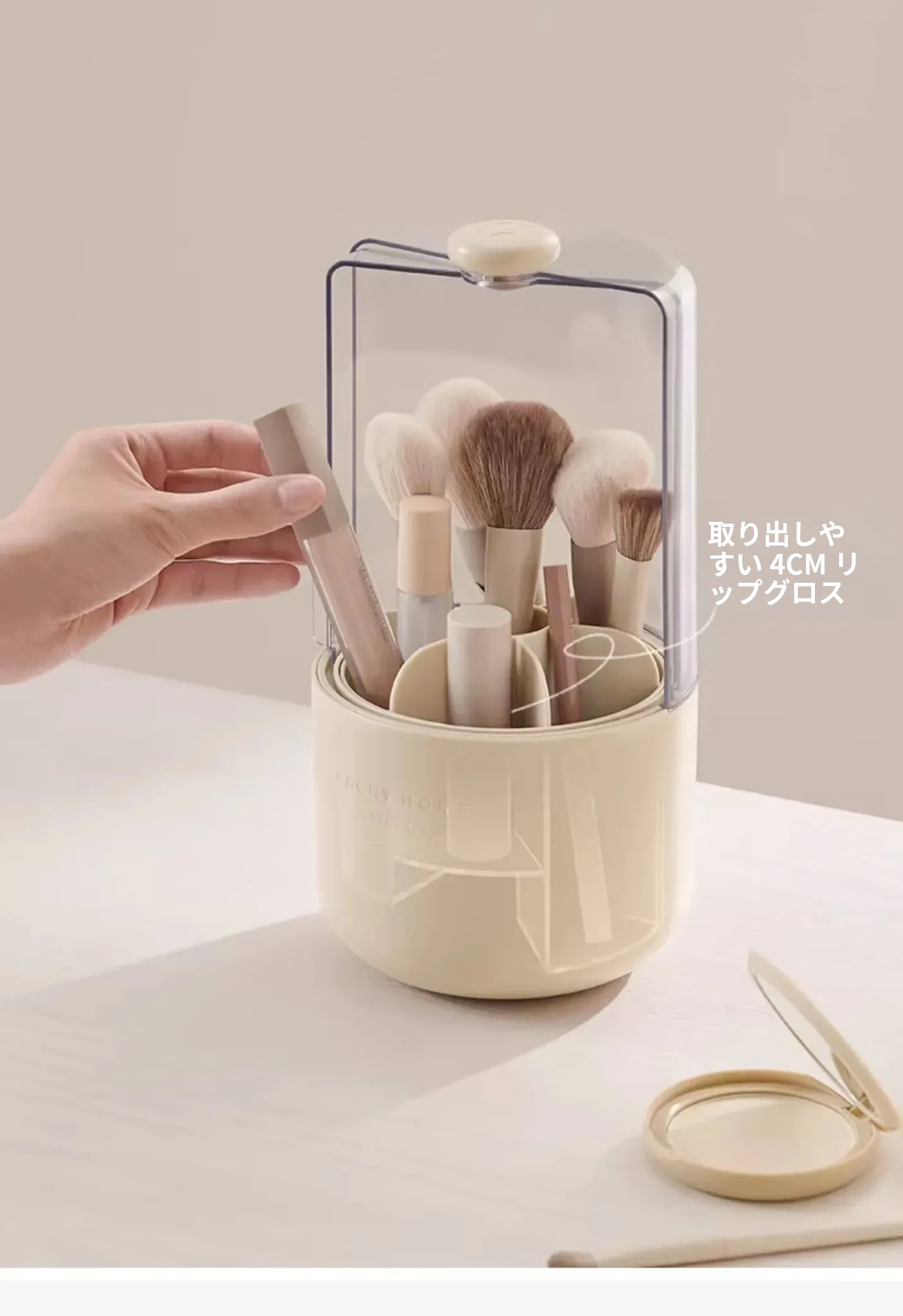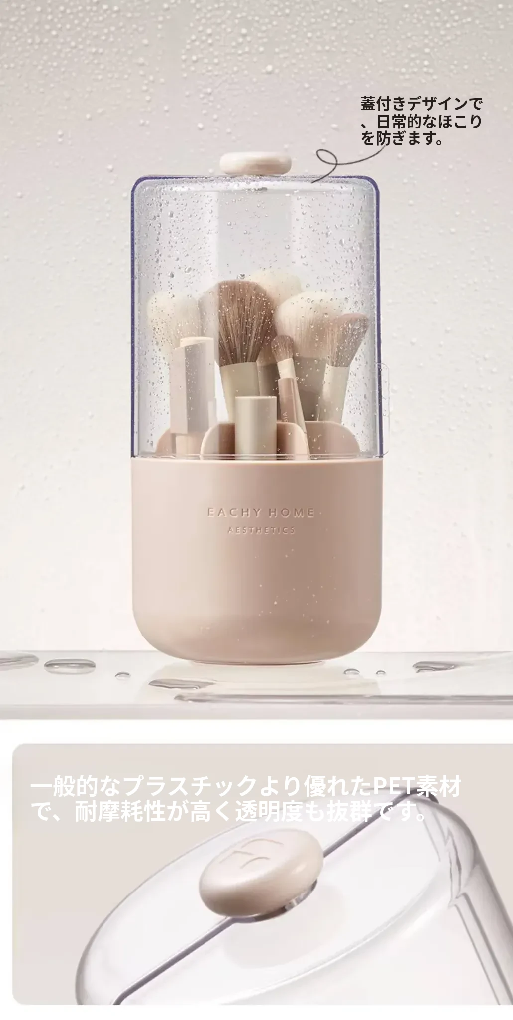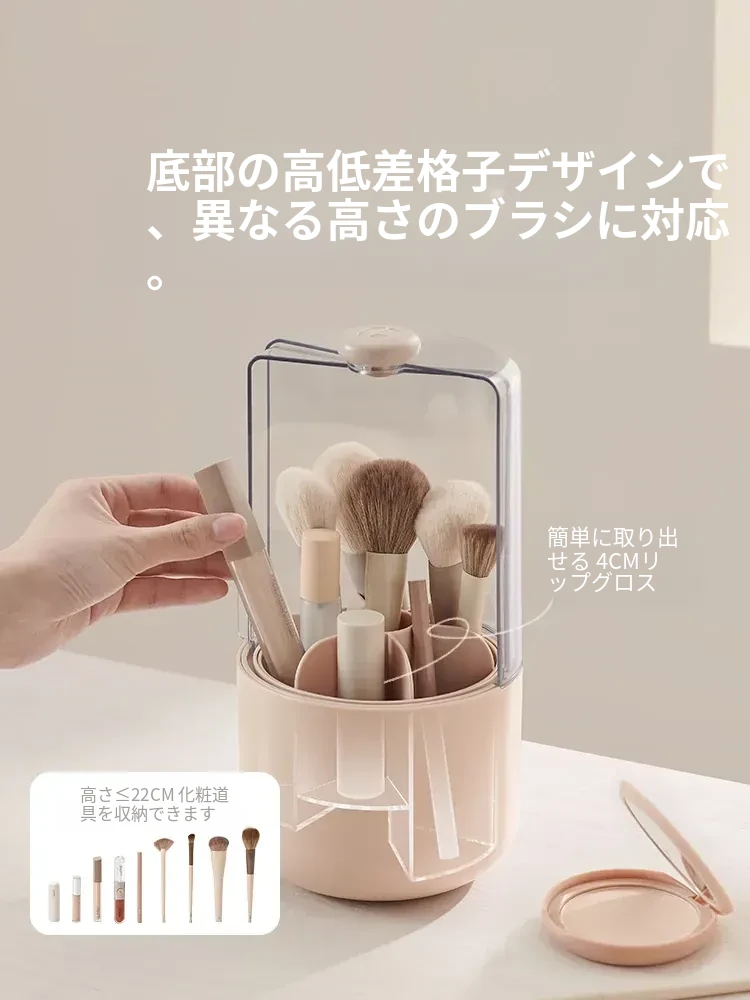 美しいメイクアップブラシ収納筒 - 化粧品デスクオーガナイザー、ホコリ防止カバー付き!おしゃれなメイクブラシバケットで、化粧台をスッキリ整頓。あなたの美容アイテムをスタイリッシュに保管!
