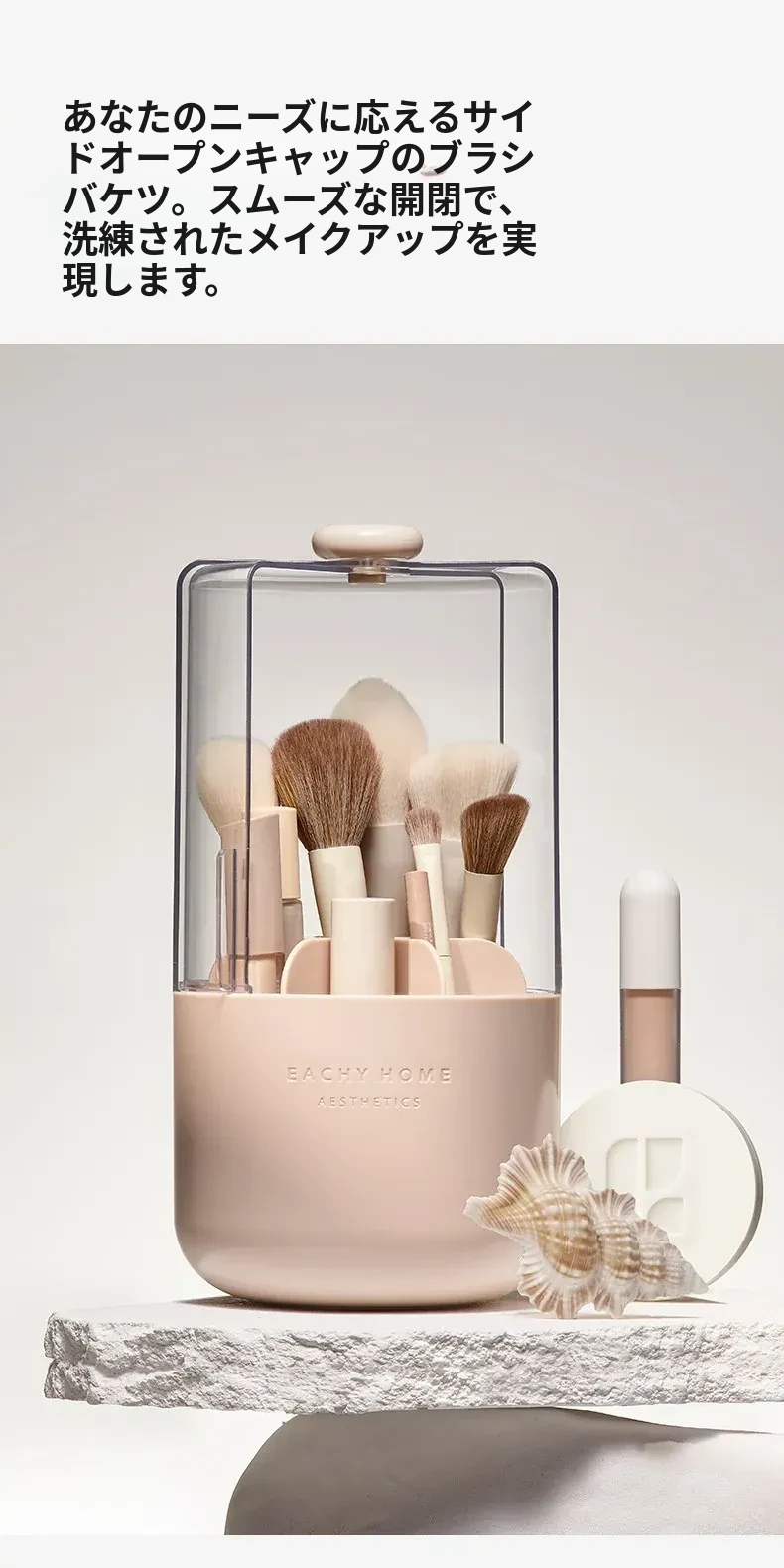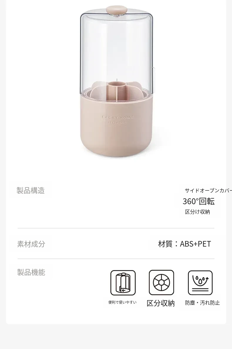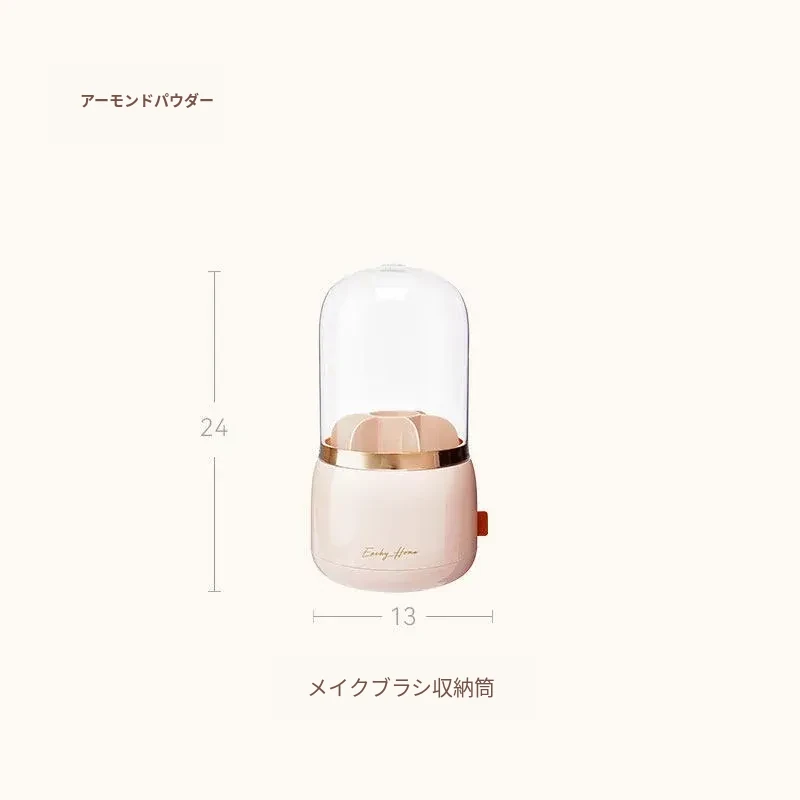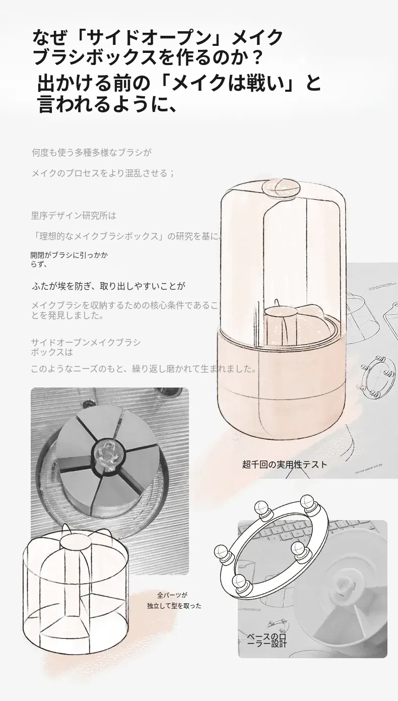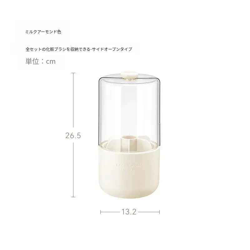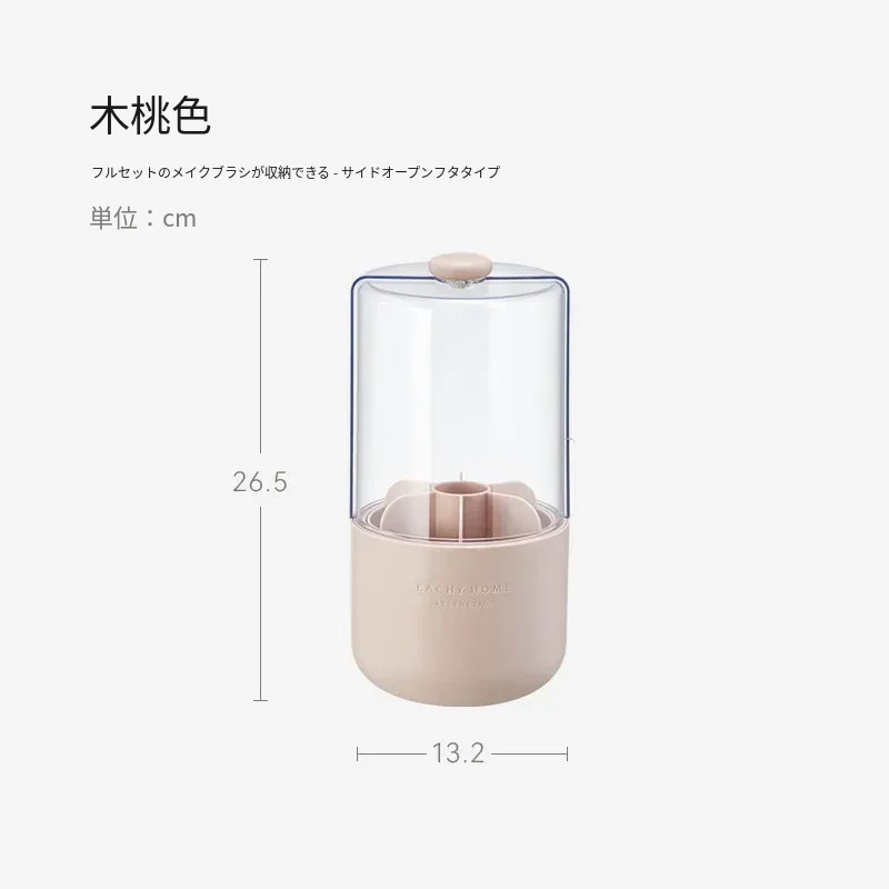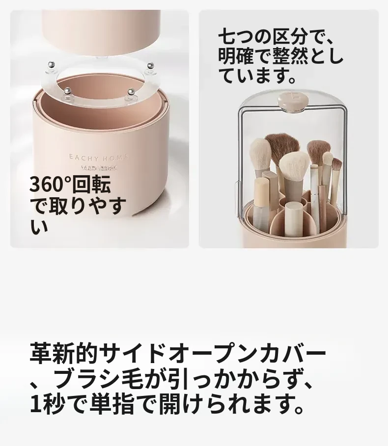 スタイリッシュなメイクブラシ収納ボックス - 防塵カバー付きで、デスクを美しく整理整頓!回転式で使いやすく、化粧品をすっきり収納。あなたのメイクアップをさらに楽しく!