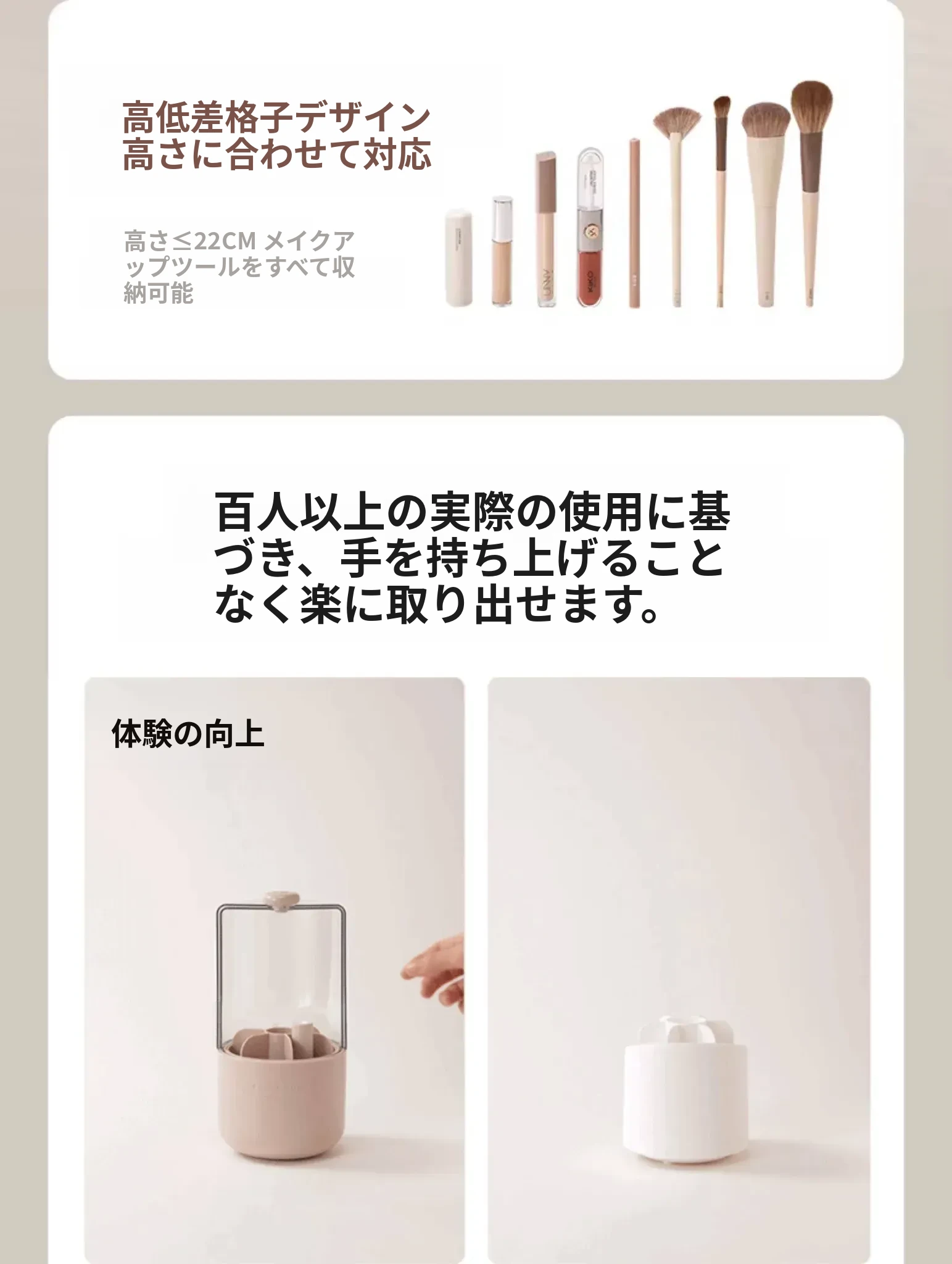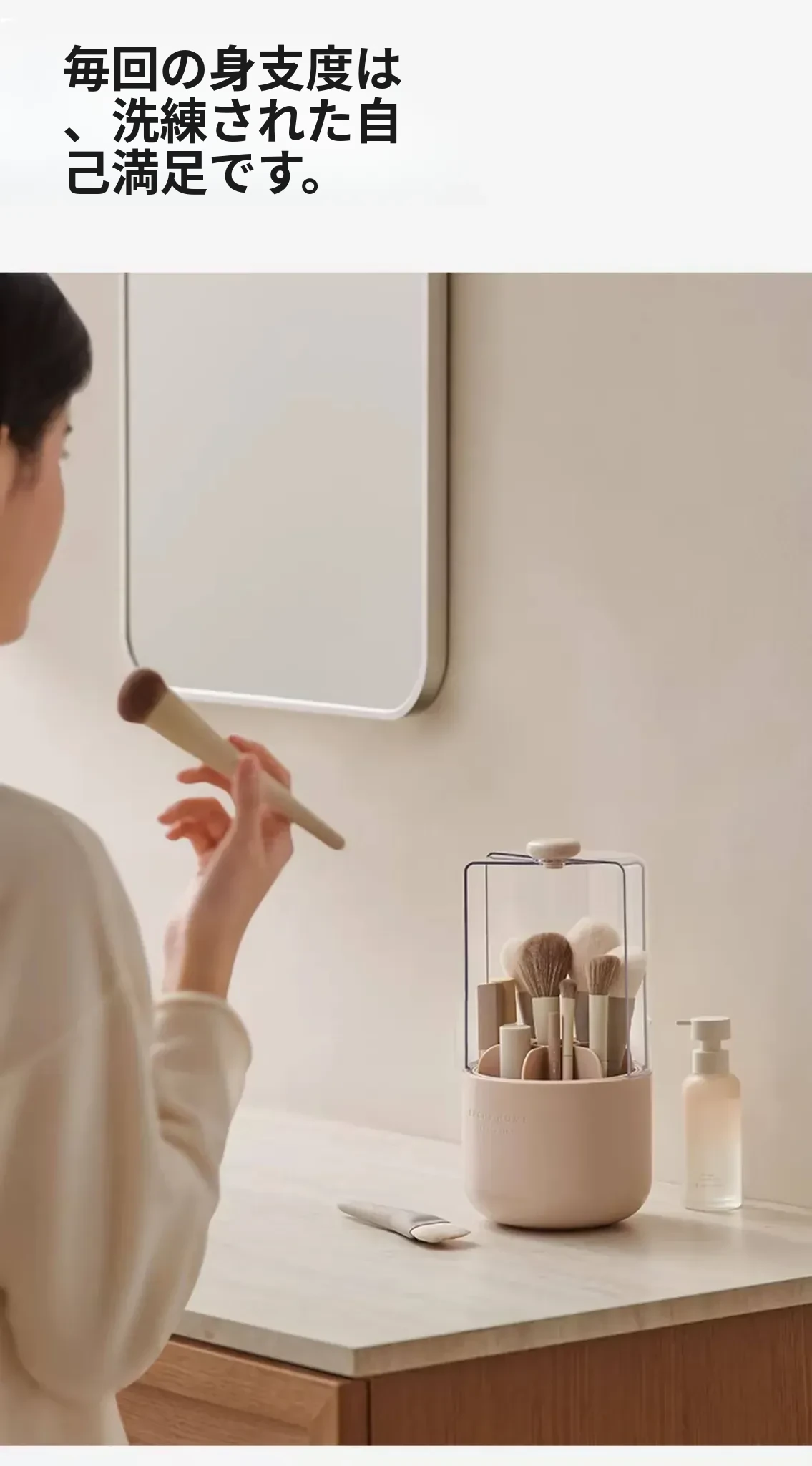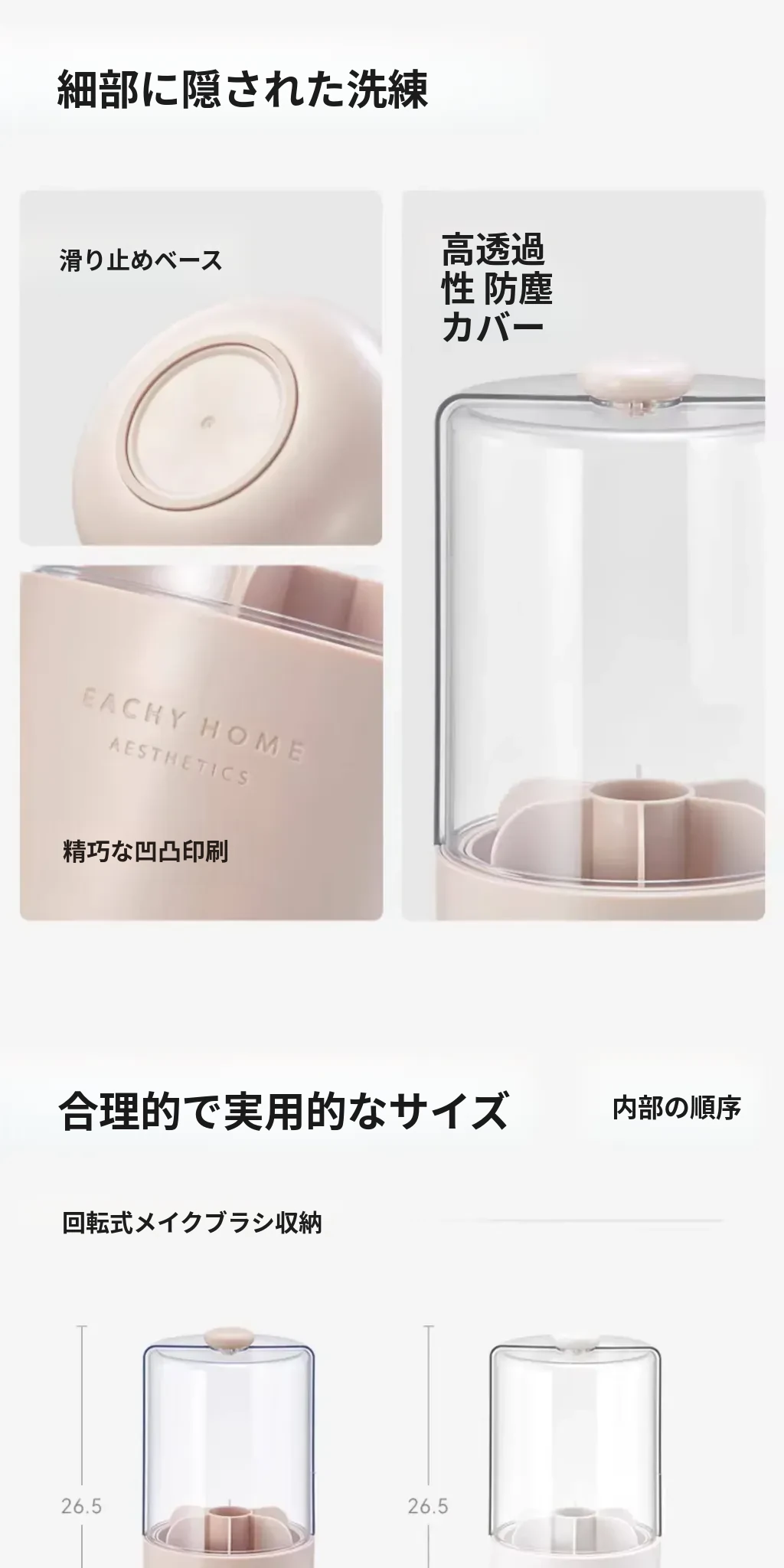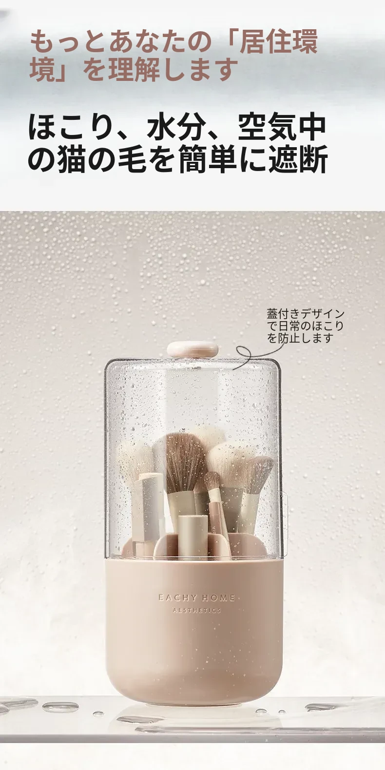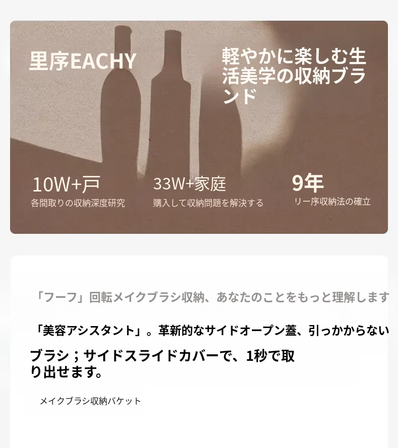 スタイリッシュなメイクブラシ収納ボックス - 防塵カバー付きで、デスクを美しく整理整頓!回転式で使いやすく、化粧品をすっきり収納。あなたのメイクアップをさらに楽しく!