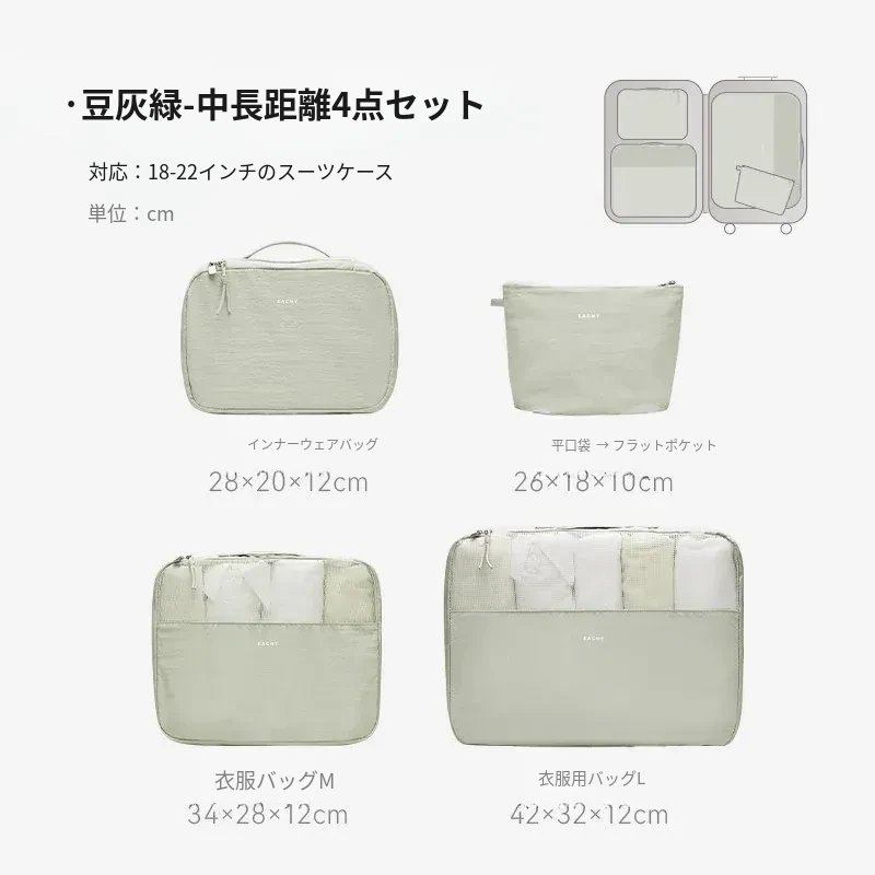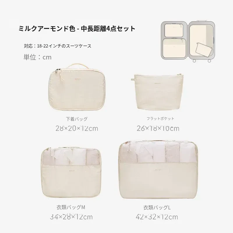【4点セット】クリームアプリコット-中長距離旅行に適応