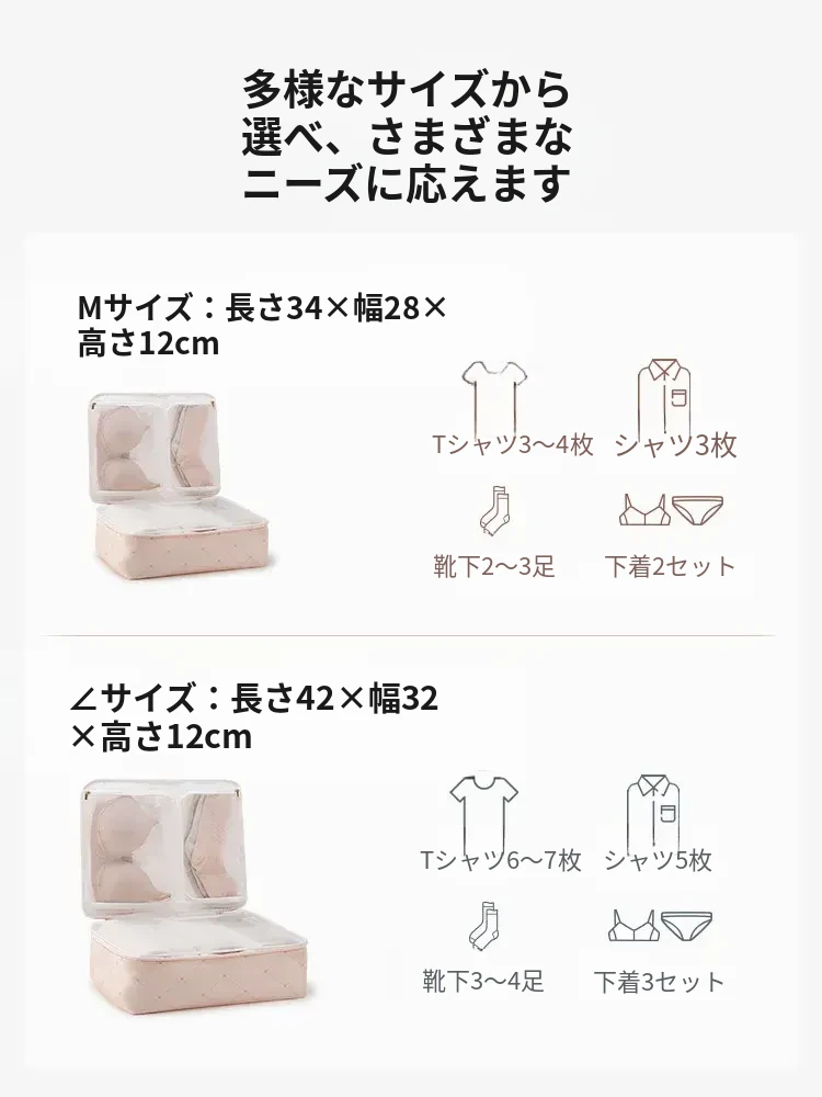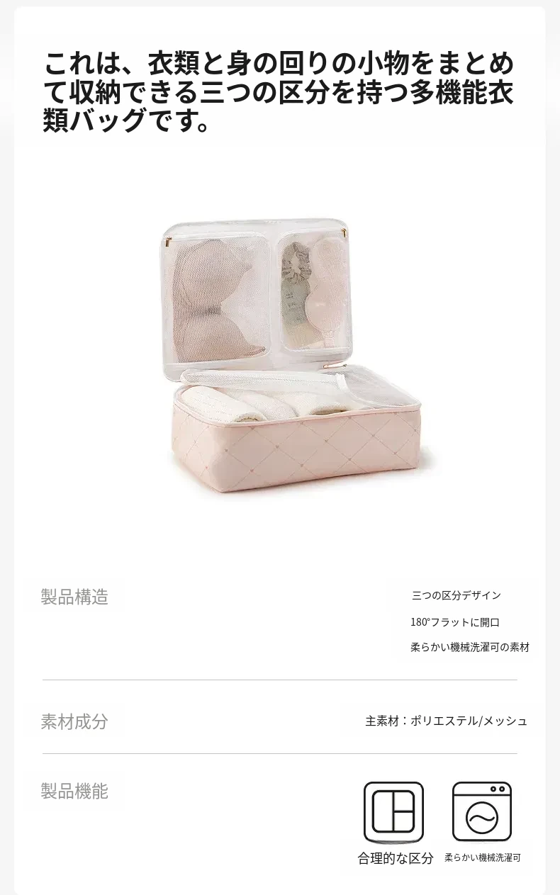 COCOピンク-Mサイズ【衣類下着バッグ| 三つの大区分】