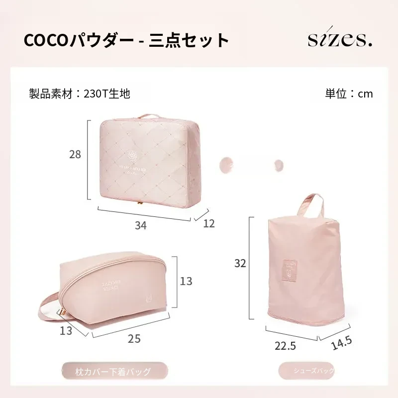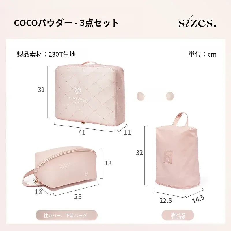 【3点】COCOピンク-衣類バッグL+下着バッグ+シューズバッグ