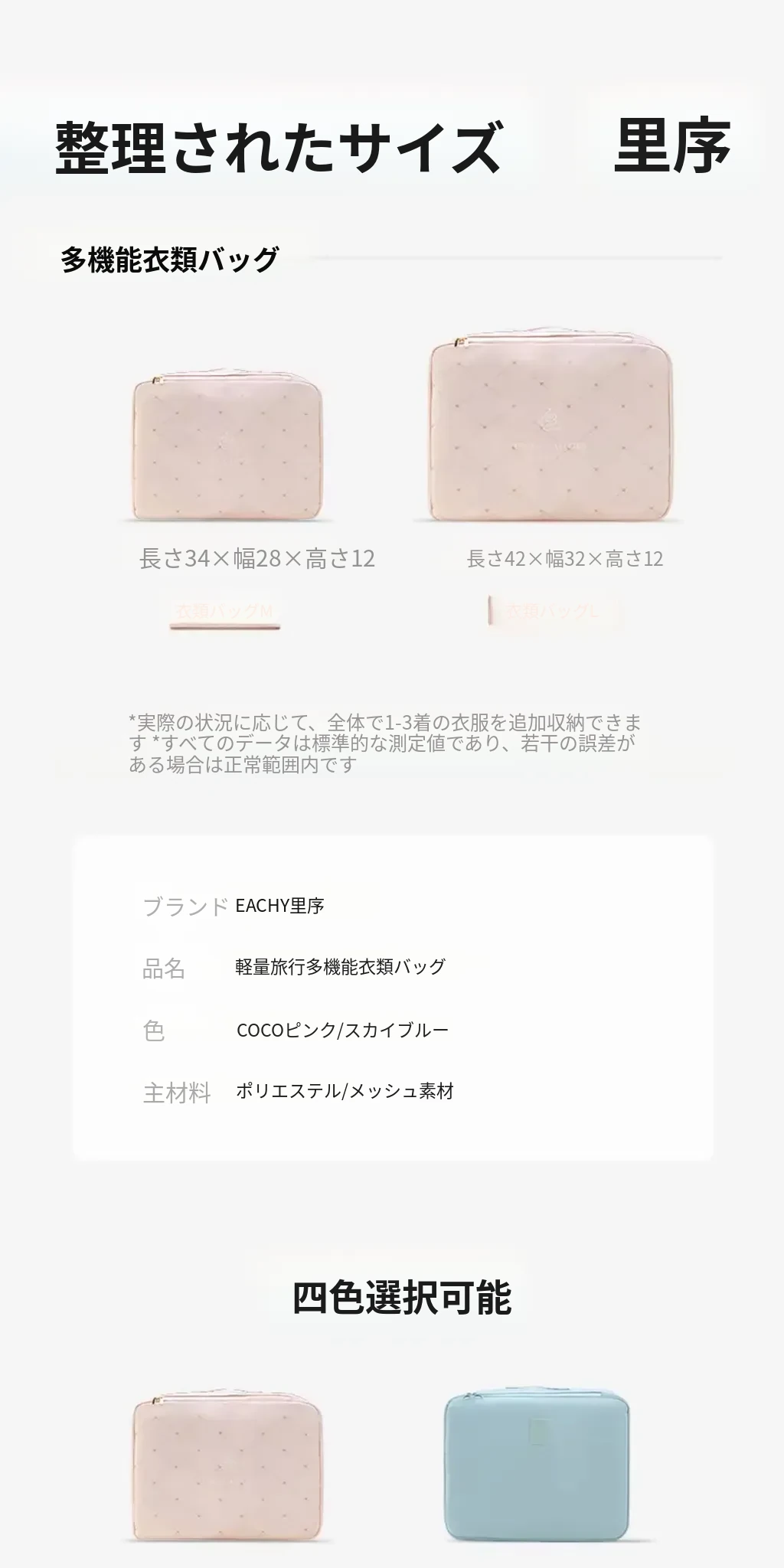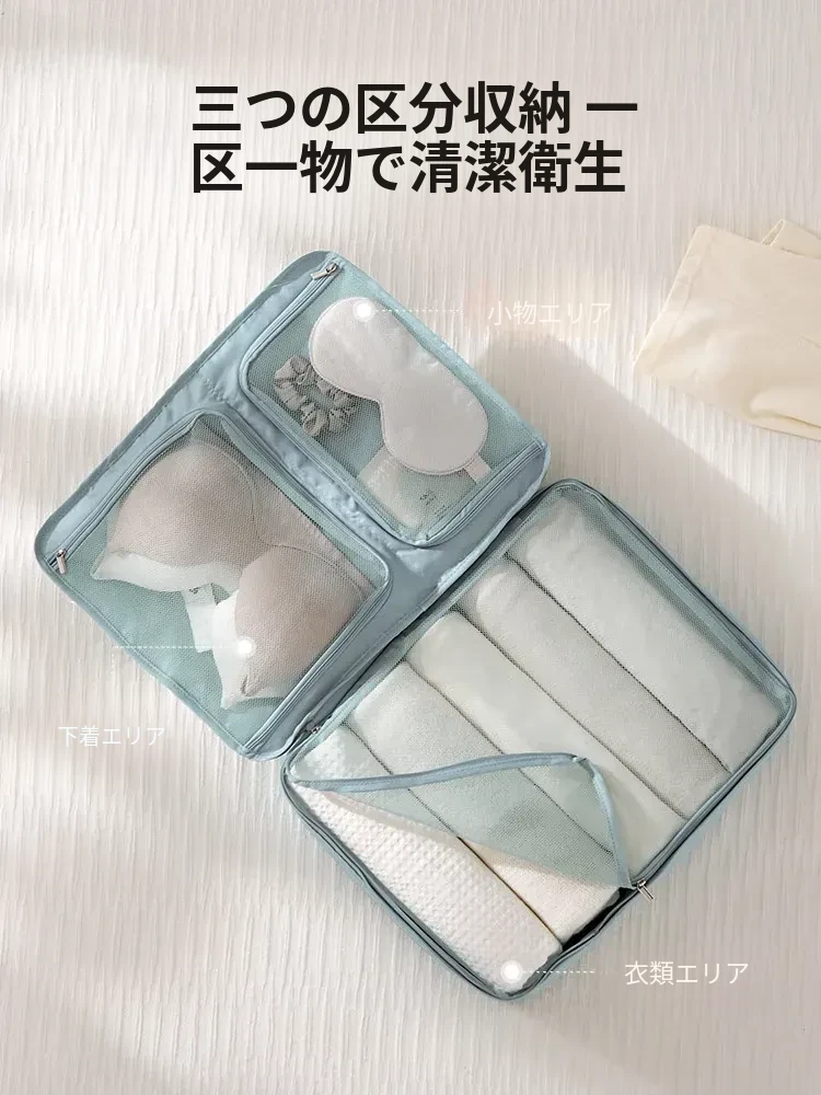天青色-Mサイズ【衣類下着バッグ| 三つの大区分】
