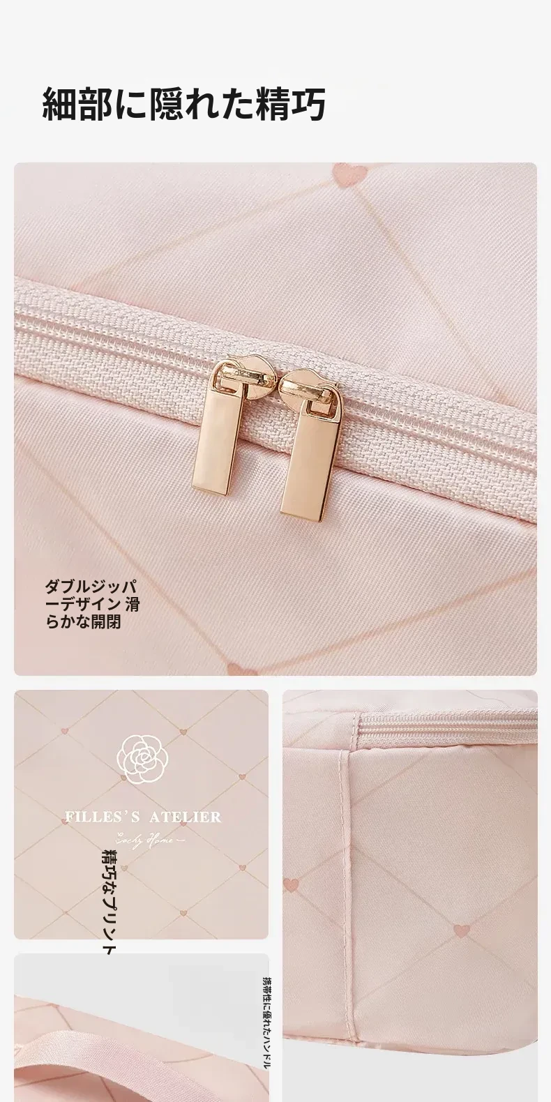 COCOピンク-Lサイズ【衣類下着バッグ| 三つの大区分】