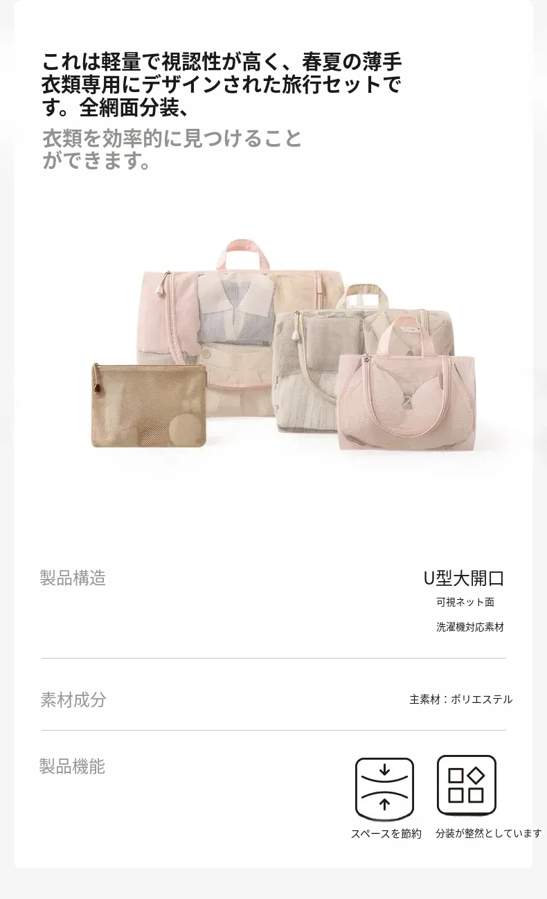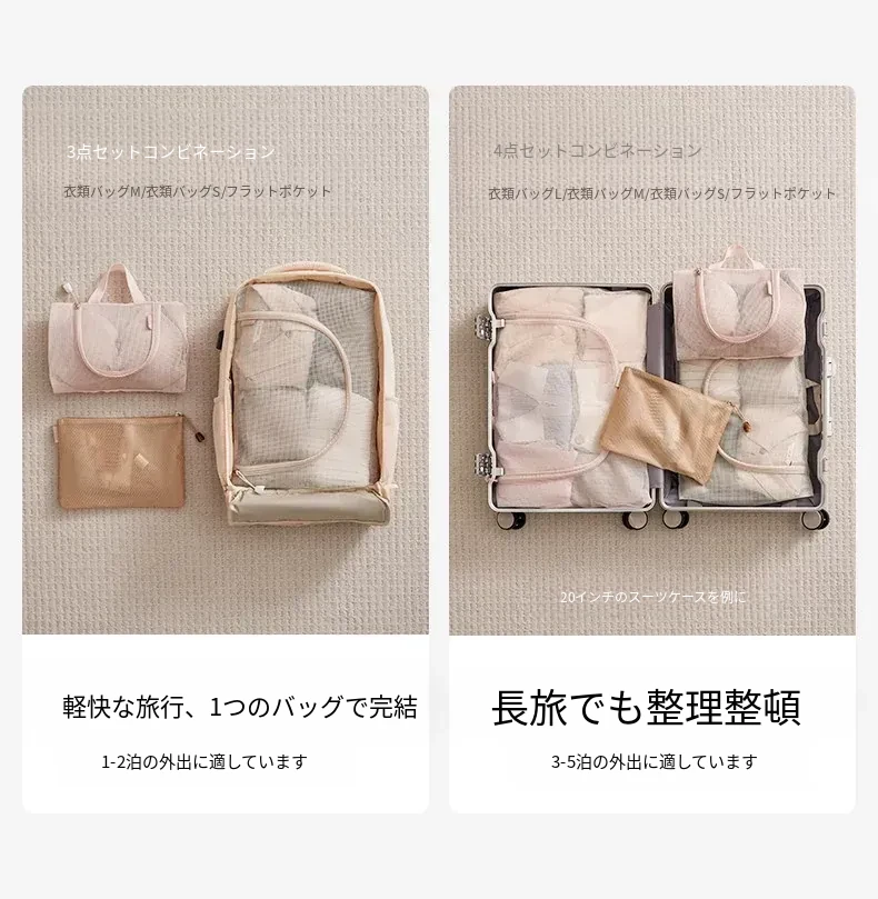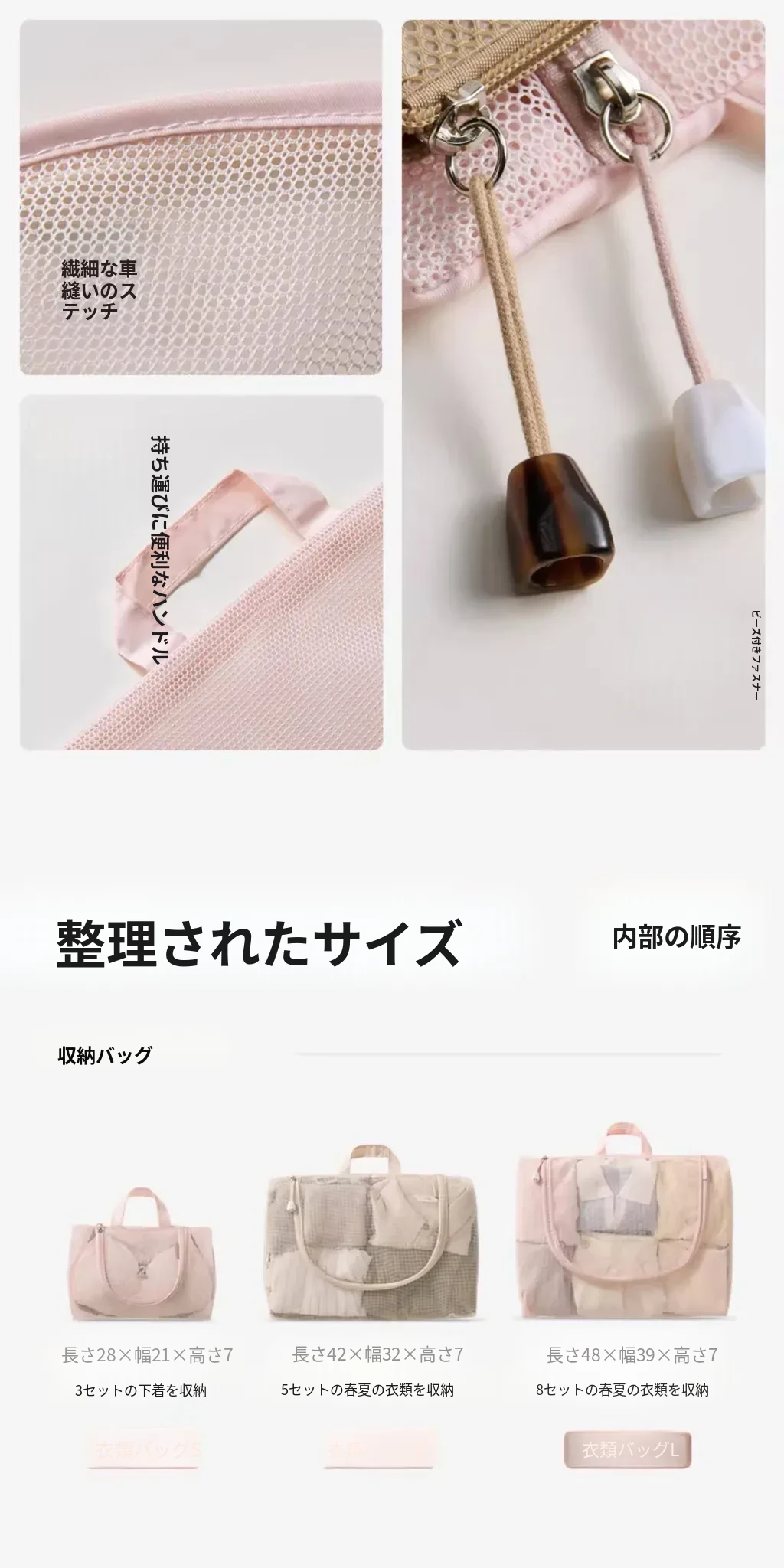旅行に最適!衣類整理袋 - スーツケース内の下着や衣服をスマートに収納!夏の外出にぴったりな便利なポーチ!
