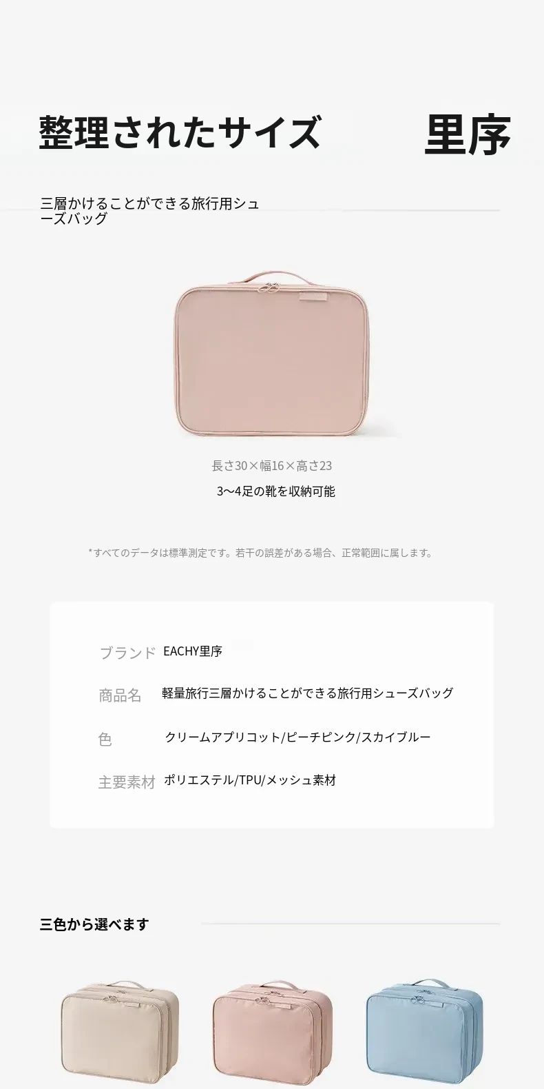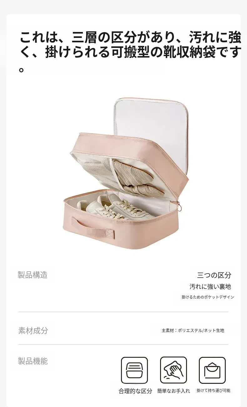 「旅行に最適!防水・防塵シューズ収納袋 - 里序シューズバッグで靴をスッキリ整理!スーツケース専用の便利な収納ソリューション!」