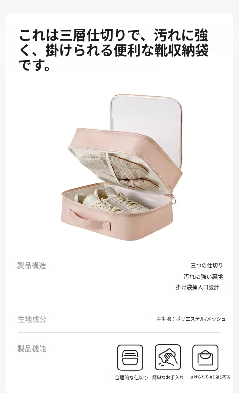 旅行に最適!防水シューズ収納バッグ - スニーカーやブーツもすっきり整理!手提げ式で持ち運びも簡単、旅行やスポーツにぴったりの追加バッグです。