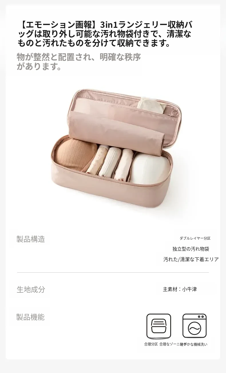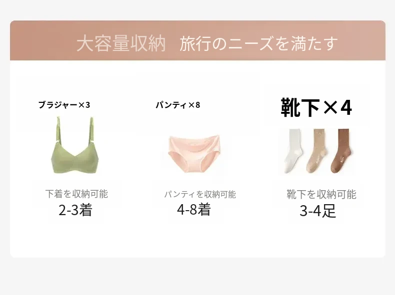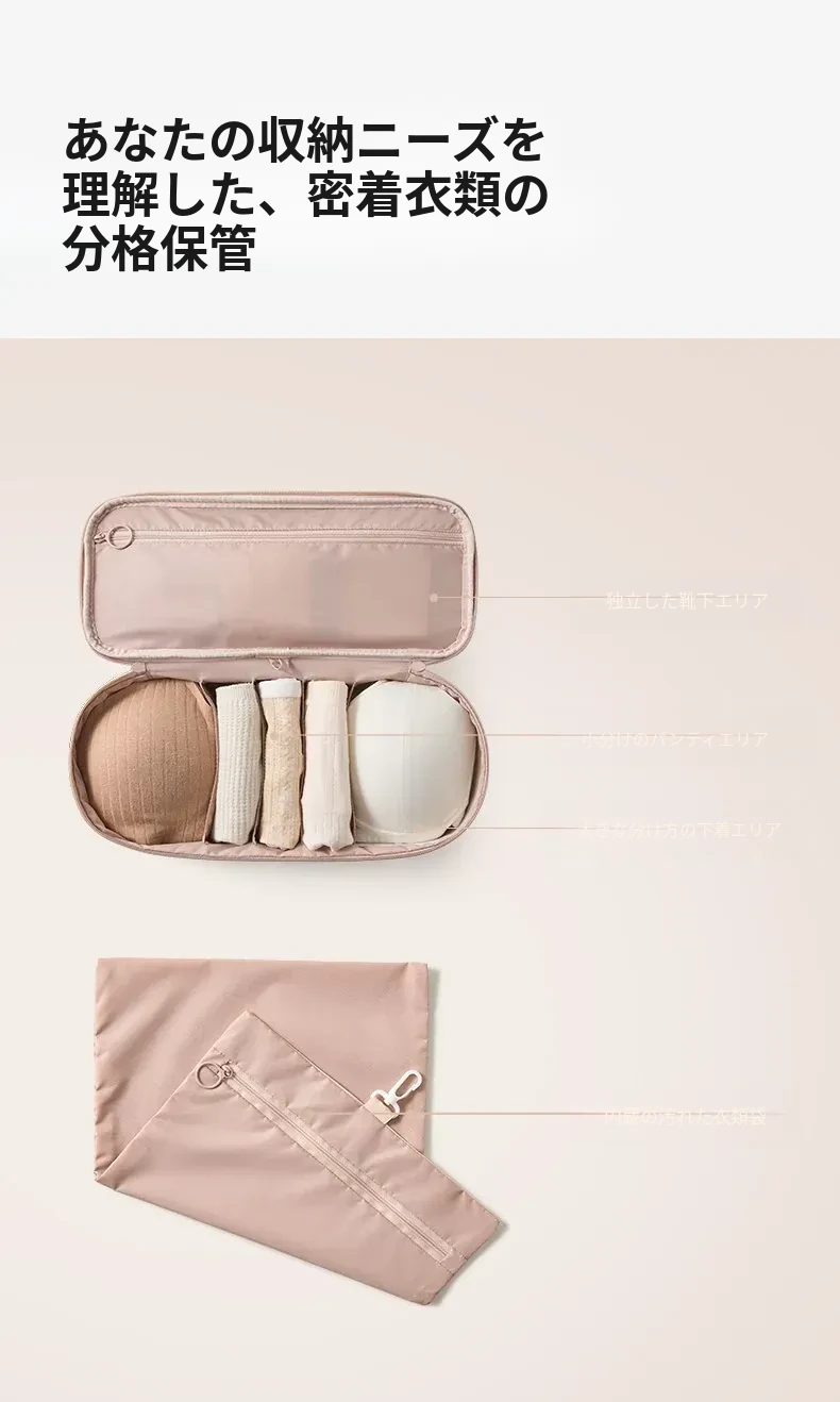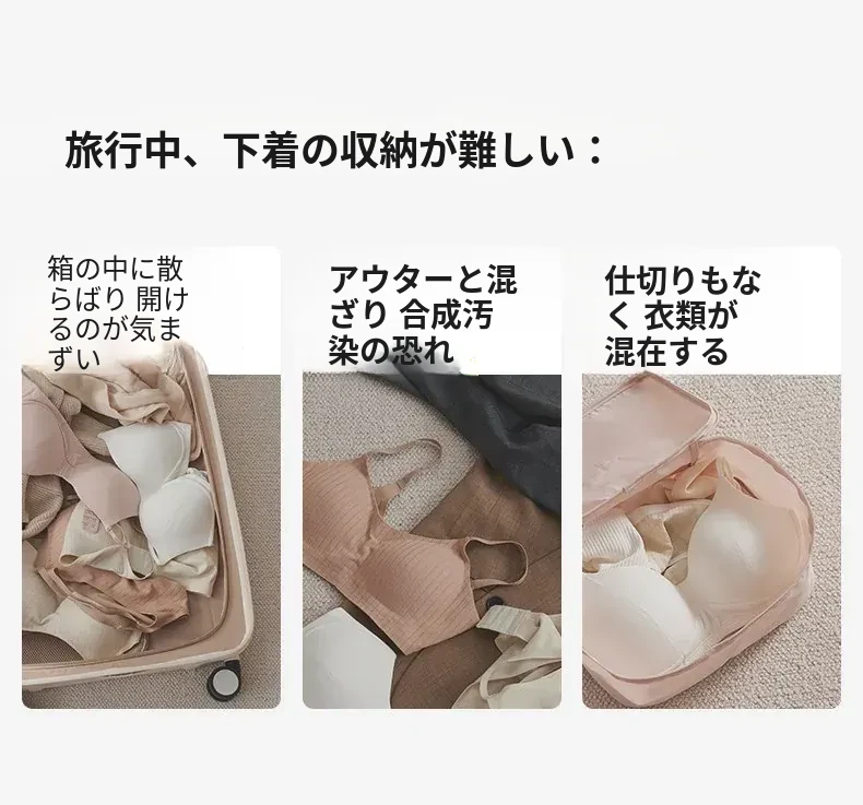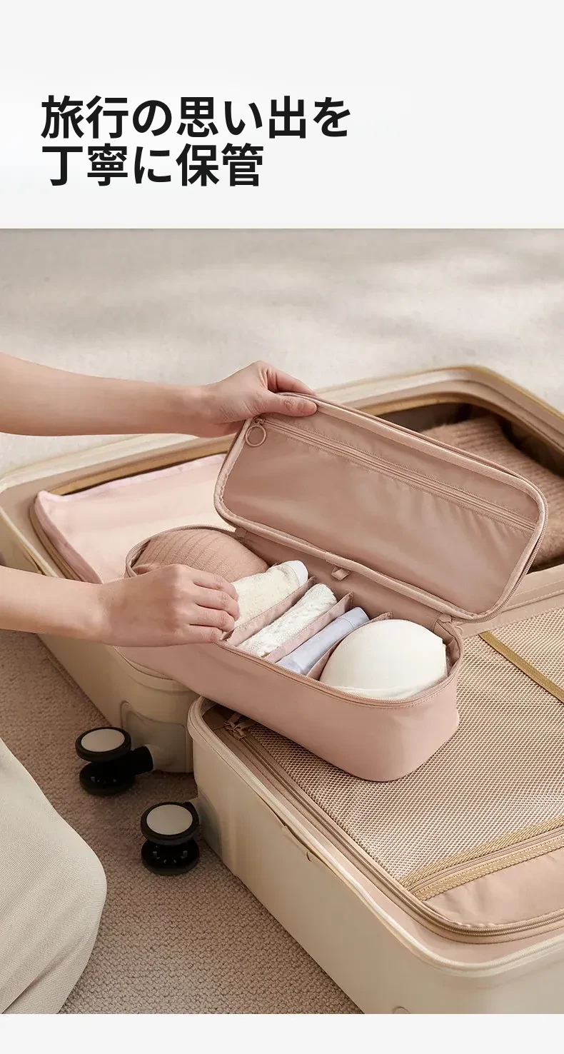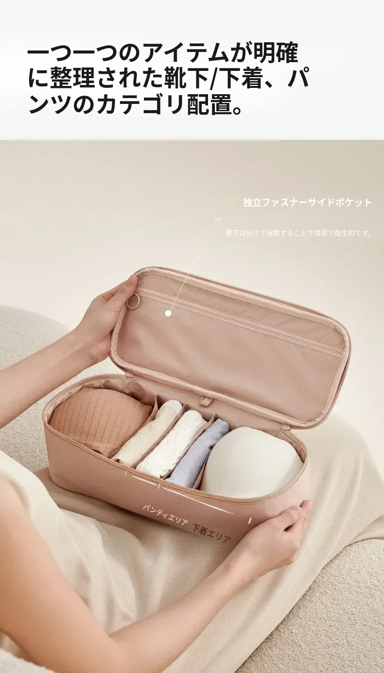 リズオトラベル用インナー収納ポーチ - ブラジャー、下着、靴下をスマートに整理!便利でコンパクトな3イン1衣類分け袋で、旅行やお出かけもスッキリ!