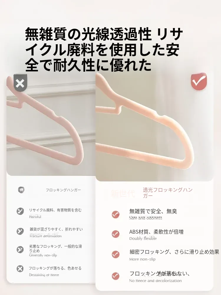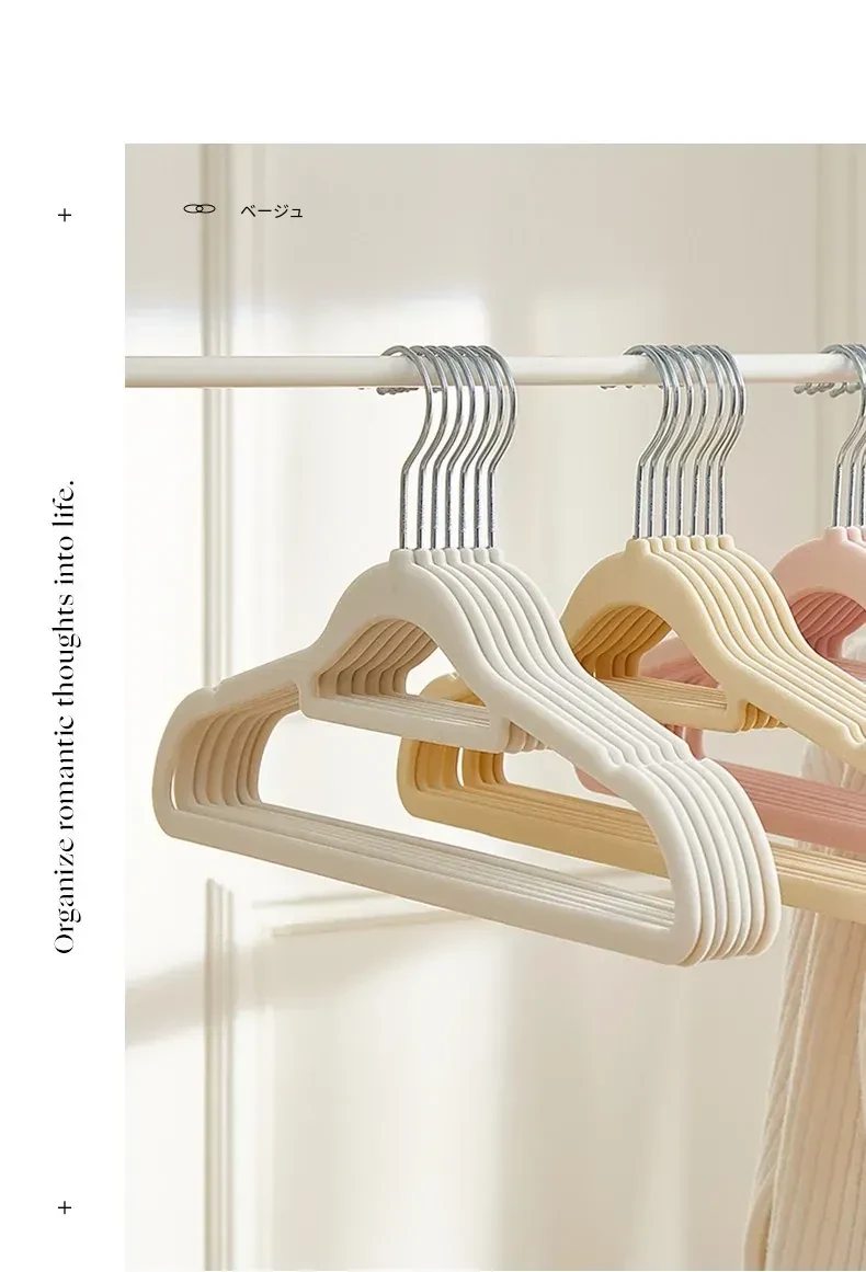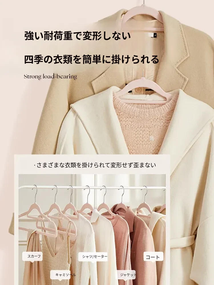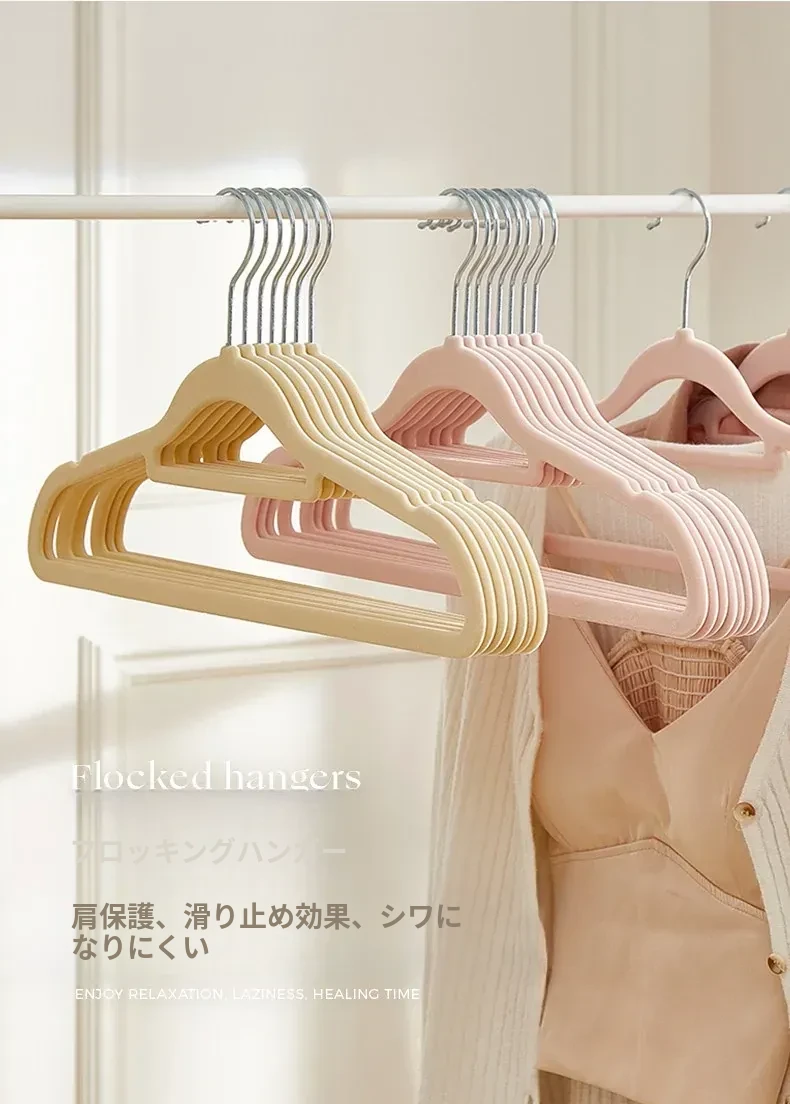 滑らない!肩崩れ防止のフロッキー衣類ハンガー - 家庭用・クローゼット整理に最適!衣服をしっかり支え、無痕で美しい仕上がり。整理整頓のプロも愛用する、優れた収納アイテムです!