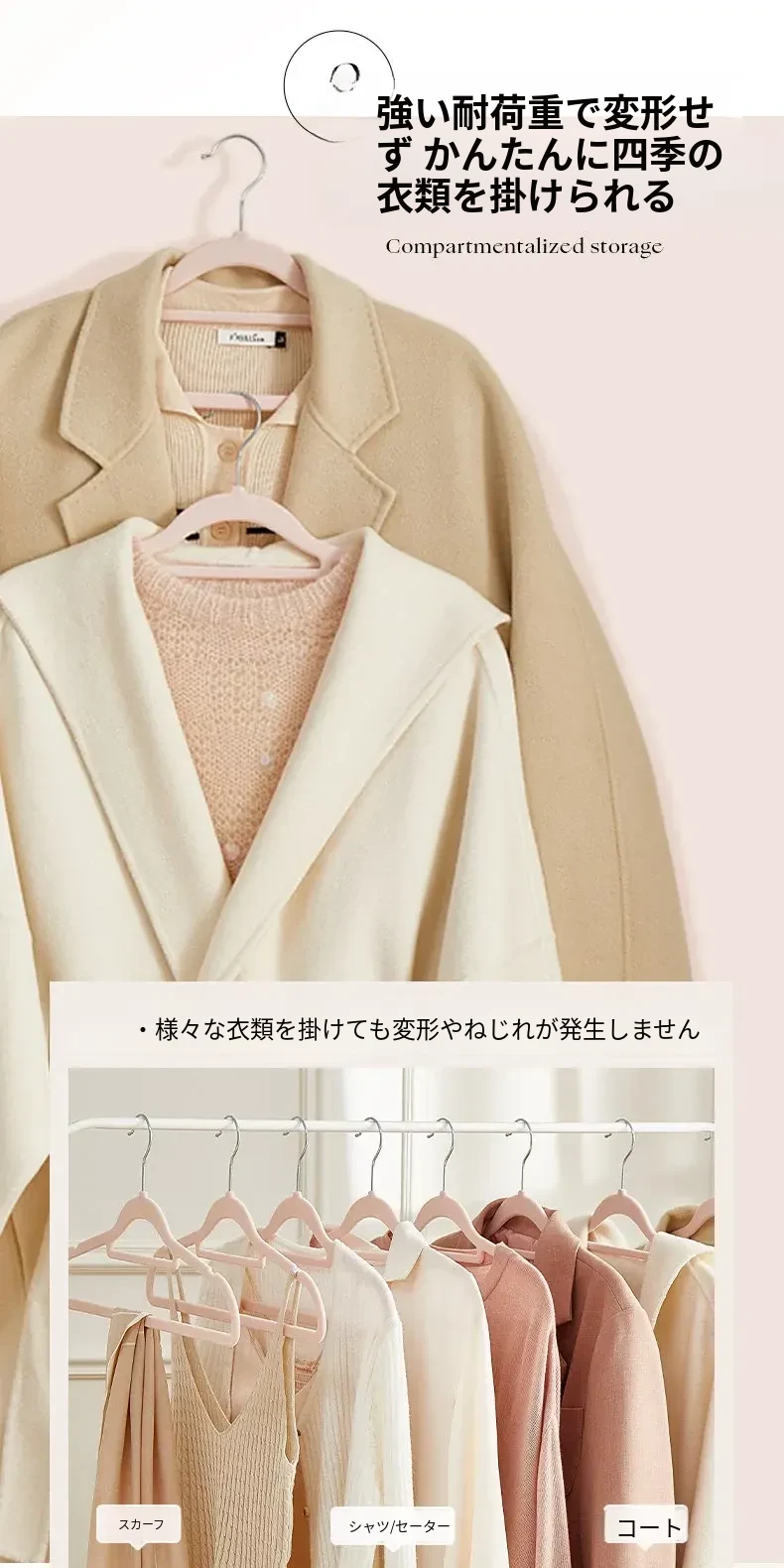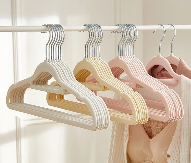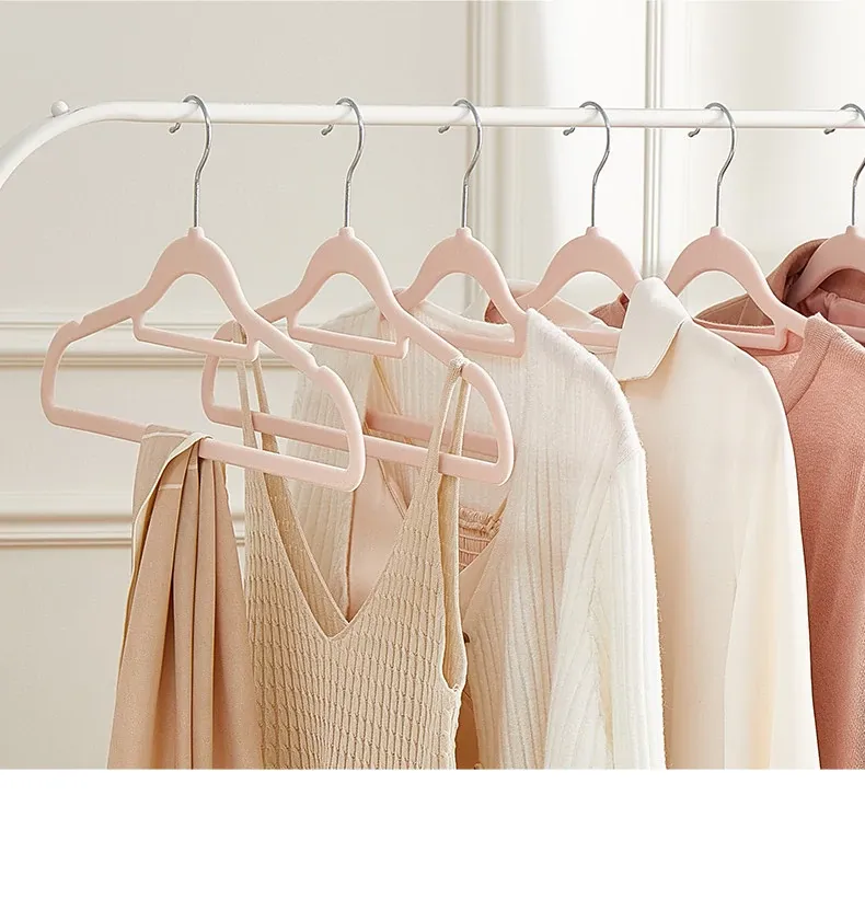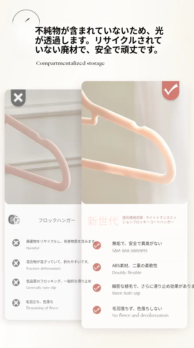 滑らない!肩崩れ防止のフロッキー衣類ハンガー - 家庭用・クローゼット整理に最適!衣服をしっかり支え、無痕で美しい仕上がり。整理整頓のプロも愛用する、優れた収納アイテムです!